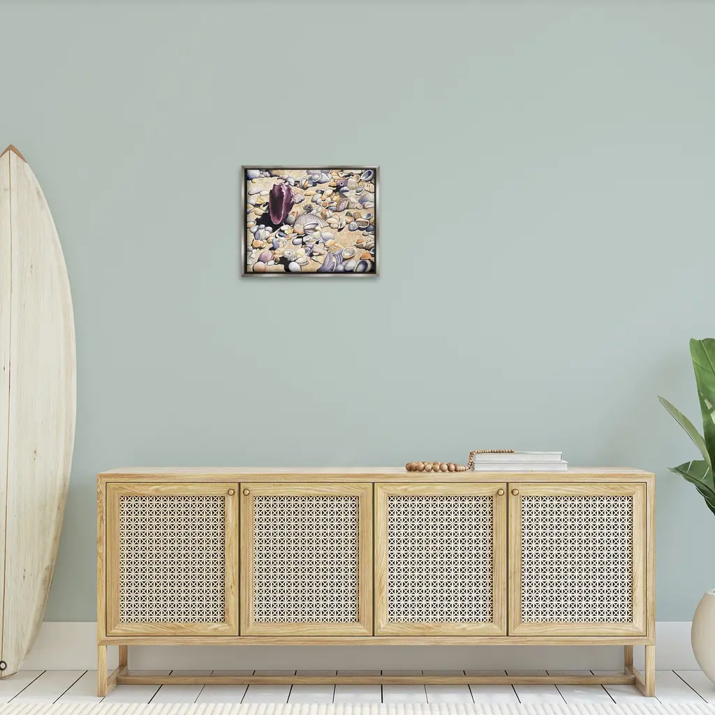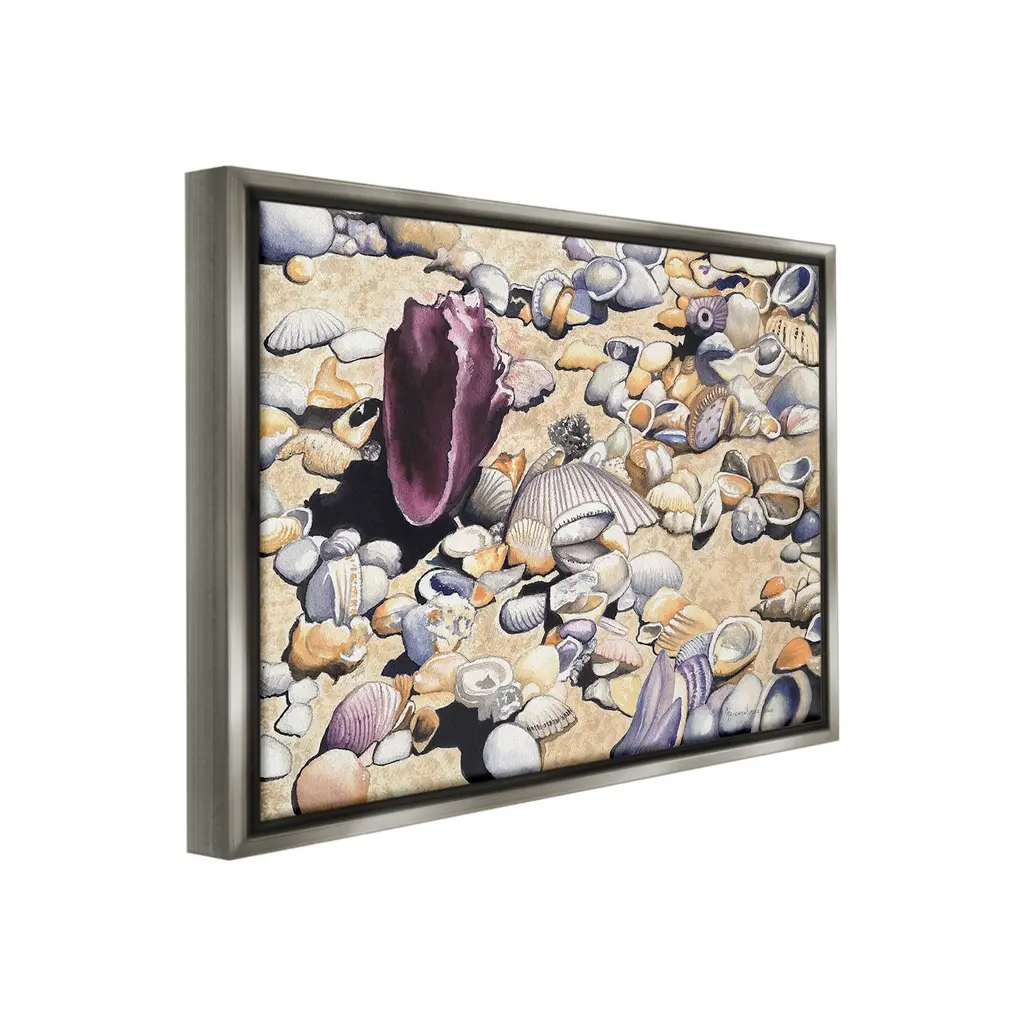 Elevate your home or office to the next level with Stupell Framed Floating Canvas Wall Art. Our premium hand-stretched canvas is mounted securely into a sturdy lightweight frame. The museum-style gap between the wrapped canvas and the box frame gives the illusion of floating artwork. Stupell Wall Art is made in the USA.Features: Dimensions: 21 x 1.7 x 17 Frame, 20 x 1.5 x 16 Canvas ArtFloating Frame Canvas Products are available in sizes 21"x17" and 31"x25". All Floating Frame Canvas Products have a 1.7" Depth.Wall Art is Ready to Hang with Hardware Free Hanging. No Installation required. For Easy Set Up Lean or Layer Artwork on Shelf or Against Wall. Artwork is Permently Fixed into the Frame.Our elevated 1.7" Thick Floating Frame is the perfect complement to our canvas style Wall Art. We use only the highest quality inks in house with industry leading printing solutions. Canvas is hand stretched over a durable wood foundation and then mounted securly into a Modern Box Frame. Made in the USA.Artwork Relates To: Animal, Seashell, Shell, Nautical, Beach, Shore, CoastDesign by Christine Reichow