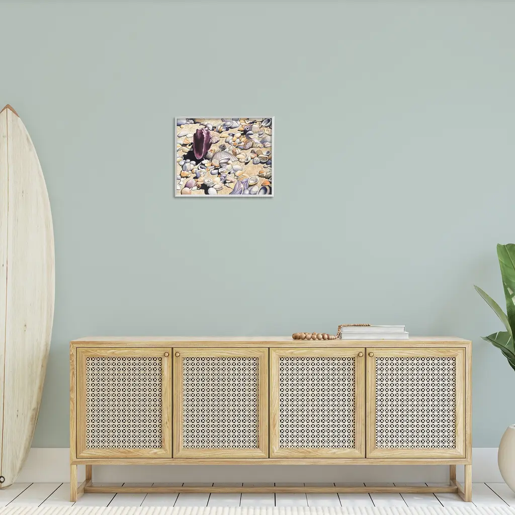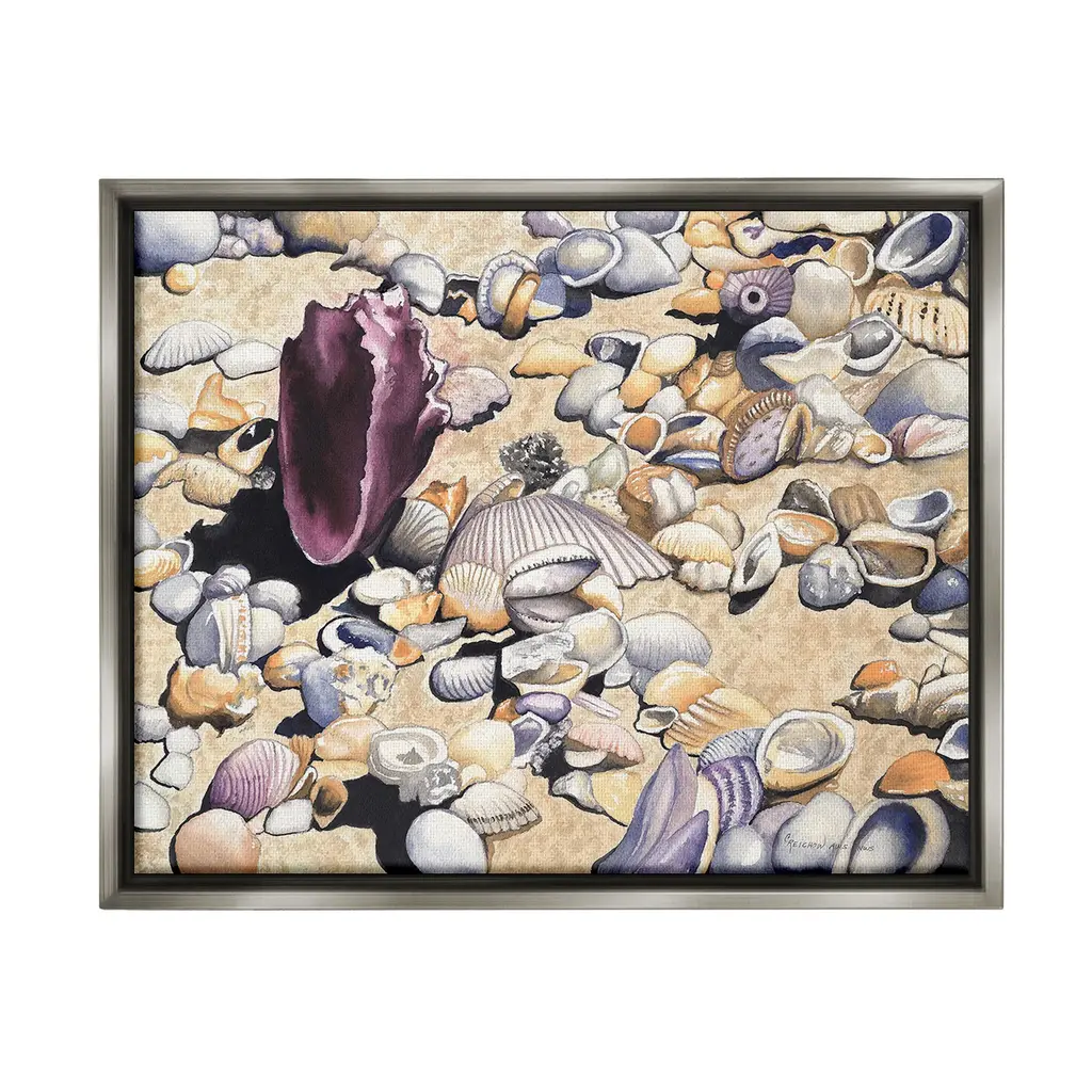 Add dimension to any room with our textured Framed Giclee Artwork. Our framed artwork is securely mounted into a 1.5-inch thick wood grain frame and ready to hang. Frames are available in three alluring styles: black, gray farmhouse and white. In addition, you should check out our oversized options if you want a statement piece. Stupell Wall Art is made in the USA.Features: Dimensions: 14 x 1.5 x 11 FramedFramed Giclee Products are available in the sizes 14"x11", 20"x16" or 30"x24". All Framed Giclee Products have a 1.5" Depth. Wall Art is Ready to Hang with Hardware Free Hanging. No installation required. For Easy Set Up Lean or Layer Artwork on Shelf or Against Wall.Our giclée prints are carefully mounted on a durable MDF backing, and then perfectly finished in a 1.5 inch thick woodgrain frame. Mounted frame colors include black, gray farmhouse and white. Made In USA.Artwork Relates To: Animal, Seashell, Shell, Nautical, Beach, Shore, CoastDesign by Christine Reichow