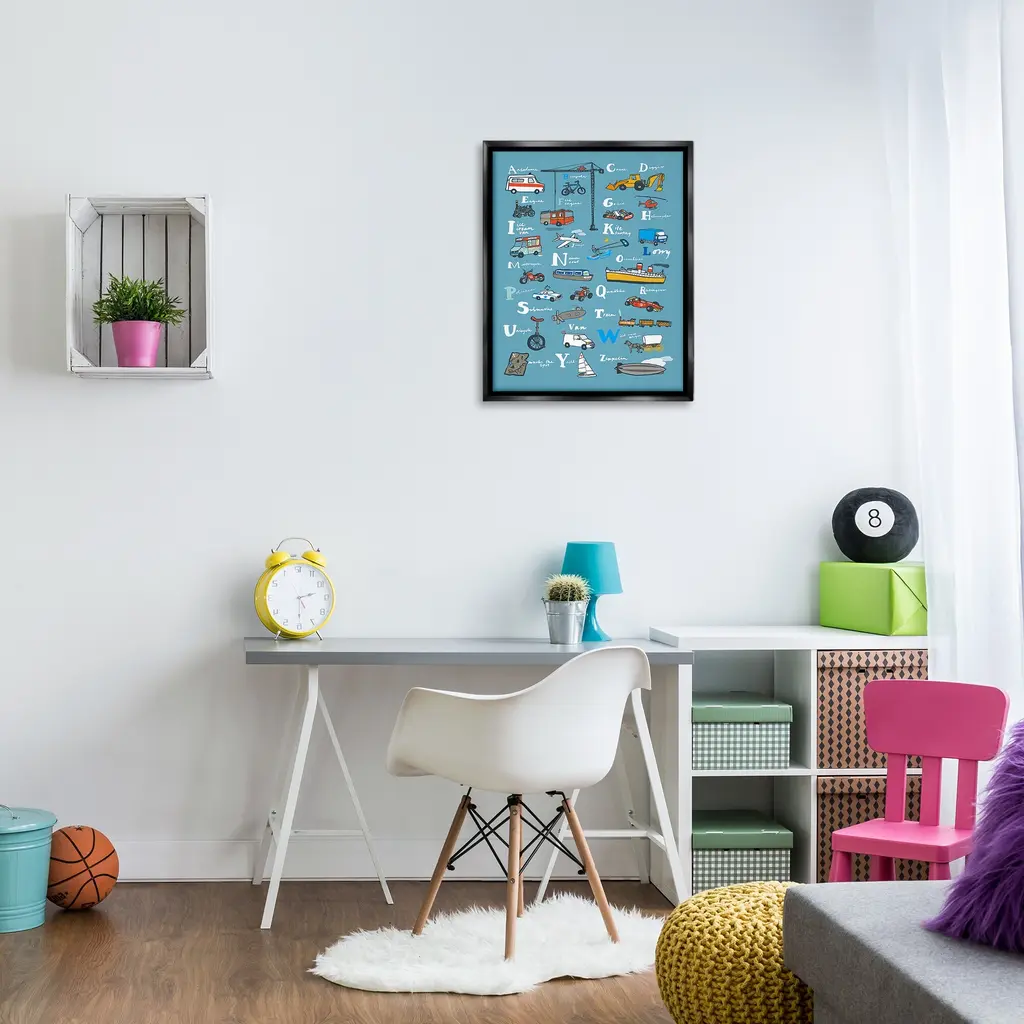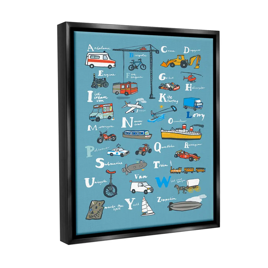 Stupell Various Vehicles Alphabet Framed Floater Canvas Wall Art Design By Hanna Melin - 25 X 31 - Black