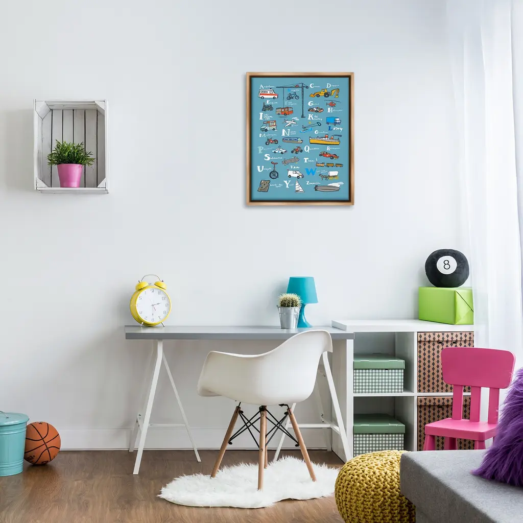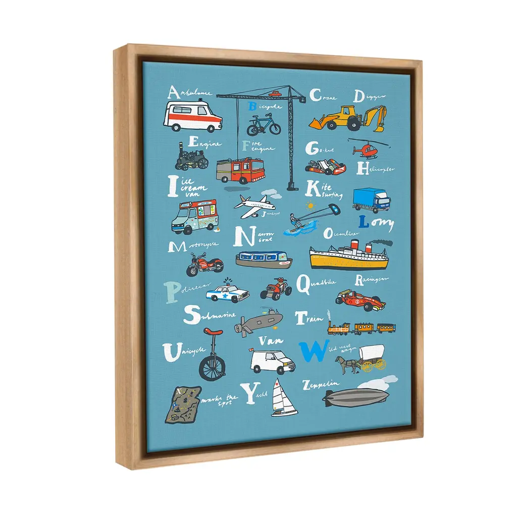 Stupell Various Vehicles Alphabet Framed Floater Canvas Wall Art Design By Hanna Melin - 25 X 31 - Brown