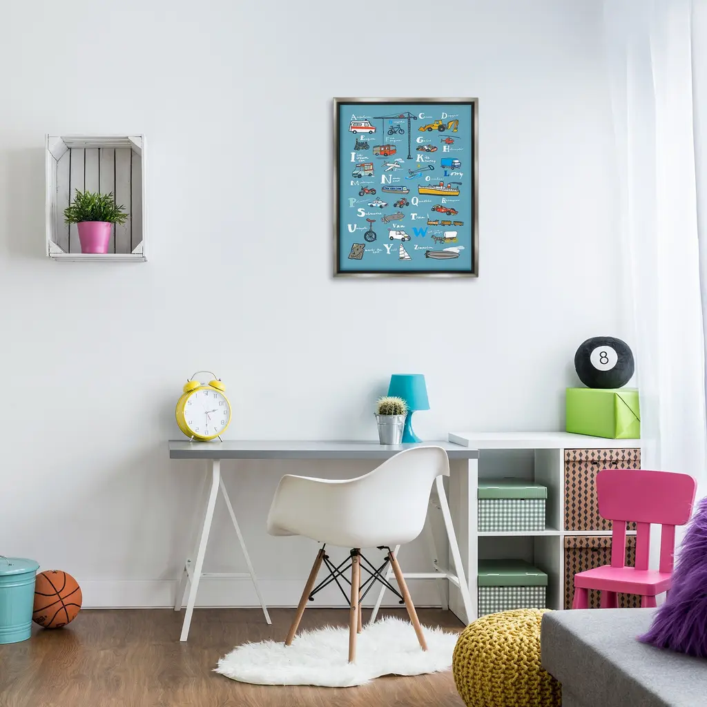 Elevate your home or office to the next level with Stupell Framed Floating Canvas Wall Art. Our premium hand-stretched canvas is mounted securely into a sturdy lightweight frame. The museum-style gap between the wrapped canvas and the box frame gives the illusion of floating artwork. Stupell Wall Art is made in the USA.Features: Dimensions: 17 x 1.7 x 21 Frame, 16 x 1.5 x 20 Canvas ArtFloating Frame Canvas Products are available in sizes 17"x21" and 25"x31". All Floating Frame Canvas Products have a 1.7" Depth.Wall Art is Ready to Hang with Hardware Free Hanging. No Installation required. For Easy Set Up Lean or Layer Artwork on Shelf or Against Wall. Artwork is Permently Fixed into the Frame.Our elevated 1.7" Thick Floating Frame is the perfect complement to our canvas style Wall Art. We use only the highest quality inks in house with industry leading printing solutions. Canvas is hand stretched over a durable wood foundation and then mounted securly into a Modern Box Frame. Made in the USA.Artwork Relates To: Aircraft, Airplane, Transportation, Vehicle, Motorcycle, Alphabet, Educational, Automobile, ConstructionDesign by Hanna Melin