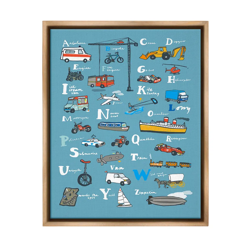 Stupell Various Vehicles Alphabet Framed Floater Canvas Wall Art Design By Hanna Melin - 25 X 31 - Grey