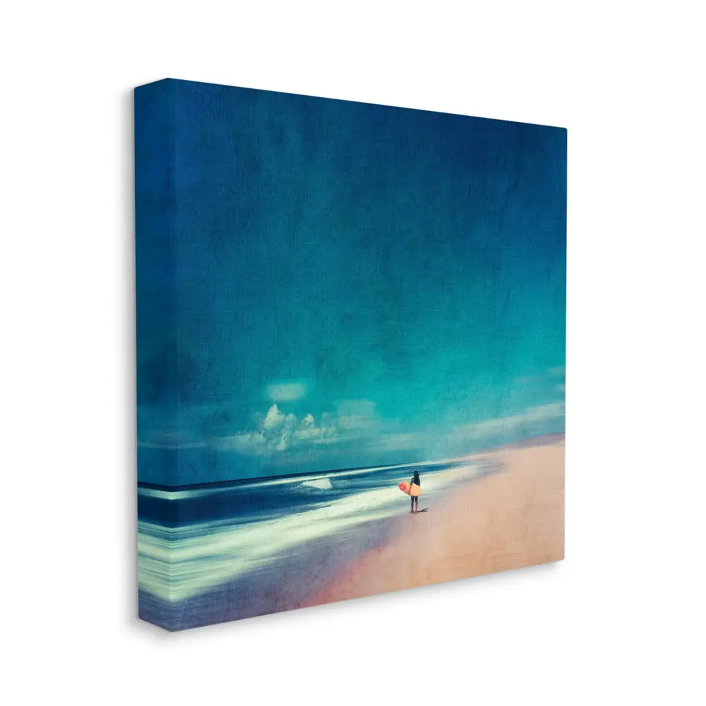 We create our stretched canvas to the highest standards. Using only the highest quality inks and canvas on Mimaki printers, we hand-cut and stretch each piece over a 1.5-inch thick wooden frame for hanging. As a result, the art comes ready to hang on the sturdy ledge with no installation required. Stupell Wall Art is made in the USA.Features: Dimensions: 17 x 1.5 x 17 InchesStretched Canvas Sizes Include Standard: 17 x 1.5 x 17 Large: 24 x 1.5 x 24 X-Large: 30 x 1.5 x 30 Oversized: 36 x 1.5 x 36Wall Art is Ready to Hang - No Installation or Hardware Needed. For Easy Set Up Lean or Layer Artwork on Shelf or Against Wall.Our stretched canvas is created with the highest standards. We use only the highest quality inks and canvas on our in house Mimaki printers, and then hand cut and stretch each piece over a 1.5 inch thick wooden frame for hanging. Made In USA.Artwork Relates To: Beach, Coast, Nature, Outdoors, Sea, Shoreline, Water, Sky, Person, Horizon, Scenery, SurfingDesign by Dirk Wustenhagen