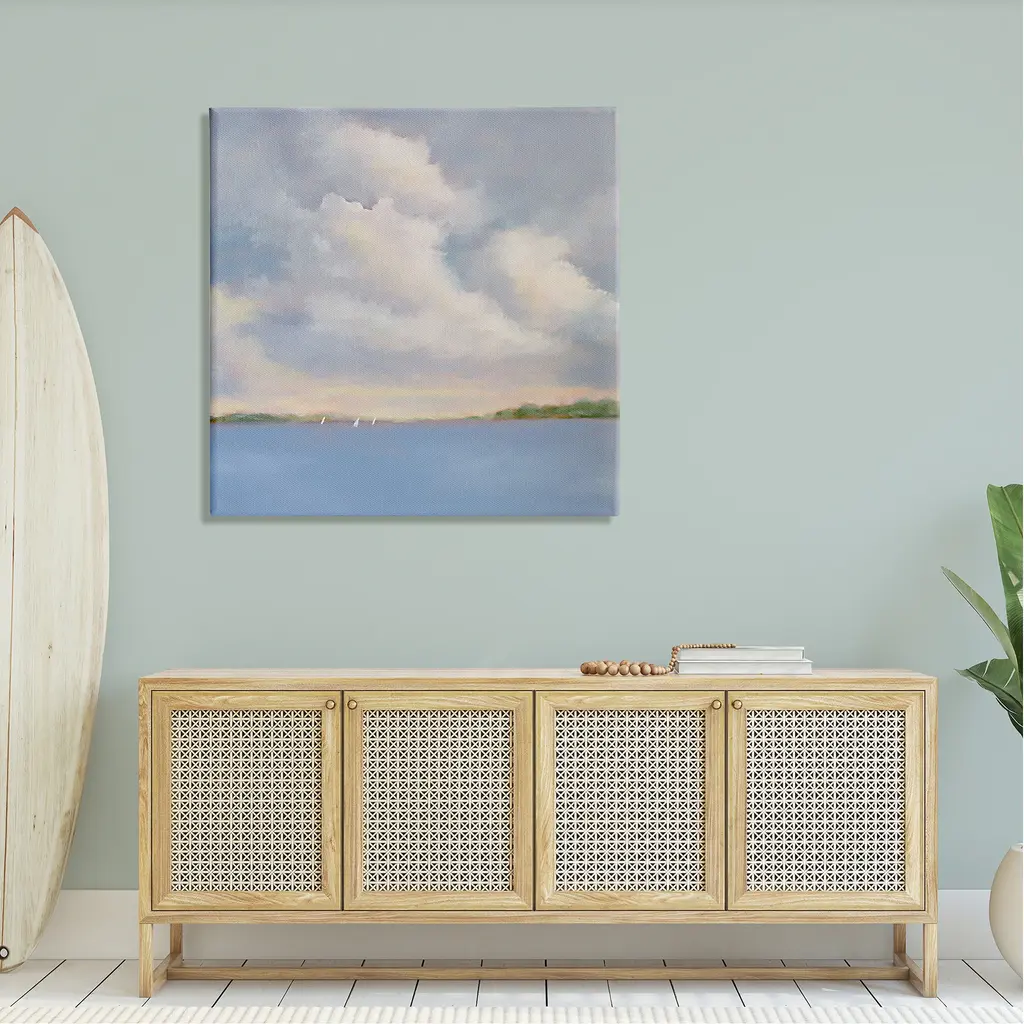 Proudly made in the USA, Our stretched canvas is created with the highest standards. We use only the highest quality inks and canvas on our in house Mimaki printers, and then hand cut and stretch each piece over a 1.5 inch thick wooden frame for hanging. The art comes ready to hang with no installation required. Not to mention, at this size, it is sure to be the focal point of any room!Features:Stretched Canvas Sizes IncludeStandard: 17 x 1.5 x 17Large: 24 x 1.5 x 24X-Large: 30 x 1.5 x 30Oversized: 36 x 1.5 x 36Wall Art is Ready to Hang - No Installation or Hardware Needed. For Easy Set Up Lean or Layer Artwork on Shelf or Against Wall.Artwork Relates To: Nature, Outdoors, Painting, Water, Weather, Panoramic, Landscape, Scenery, Land, Cumulus, Sky, Cloud, Sea, Ocean, Shoreline, Coast, Waterfront, SailboatsOur stretched canvas is created with the highest standards. We use only the highest quality inks and canvas on our in house Mimaki printers, and then hand cut and stretch each piece over a 1.5 inch thick wooden frame for hanging. Made In USA.Design by Catherine Andersen