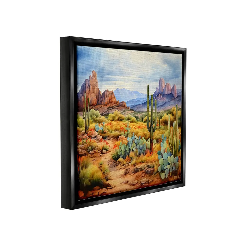 Elevate your home or office to the next level with Stupell Framed Floating Canvas Wall Art. Our premium hand-stretched canvas is mounted securely into a sturdy lightweight frame. The museum-style gap between the wrapped canvas and the box frame gives the illusion of floating artwork. Stupell Wall Art is made in the USA.Features: Dimensions: 18 x 1.7 x 18 Frame, 17 x 1.5 x 17 Canvas ArtFloating Frame Canvas Products are available in sizes 18"x18" and 25"x25". All Floating Frame Canvas Products have a 1.7" Depth.Wall Art is Ready to Hang with Hardware Free Hanging. No Installation required. For Easy Set Up Lean or Layer Artwork on Shelf or Against Wall. Artwork is Permently Fixed into the Frame.Our elevated 1.7" Thick Floating Frame is the perfect complement to our canvas style Wall Art. We use only the highest quality inks in house with industry leading printing solutions. Canvas is hand stretched over a durable wood foundation and then mounted securly into a Modern Box Frame. Made in the USA.Artwork Relates To: Road, Nature, Sky, Scenery, Landscape, Desert, Cactus, Mountain, Vegetation, Botanical, Plant, Canyon, PlateauDesign by RB