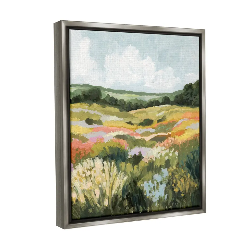 Elevate your home or office to the next level with Stupell Framed Floating Canvas Wall Art. Our premium hand-stretched canvas is mounted securely into a sturdy lightweight frame. The museum-style gap between the wrapped canvas and the box frame gives the illusion of floating artwork. Stupell Wall Art is made in the USA.Features: Dimensions: 17 x 1.7 x 21 Frame, 16 x 1.5 x 20 Canvas ArtFloating Frame Canvas Products are available in sizes 17"x21" and 25"x31". All Floating Frame Canvas Products have a 1.7" Depth.Wall Art is Ready to Hang with Hardware Free Hanging. No Installation required. For Easy Set Up Lean or Layer Artwork on Shelf or Against Wall. Artwork is Permently Fixed into the Frame.Our elevated 1.7" Thick Floating Frame is the perfect complement to our canvas style Wall Art. We use only the highest quality inks in house with industry leading printing solutions. Canvas is hand stretched over a durable wood foundation and then mounted securly into a Modern Box Frame. Made in the USA.Artwork Relates To: Painting, Flower, Plant, Field, Grassland, Nature, Countryside, Meadow, Rural, Grass, Landscape, Scenery, AbstractDesign by Victoria Barnes