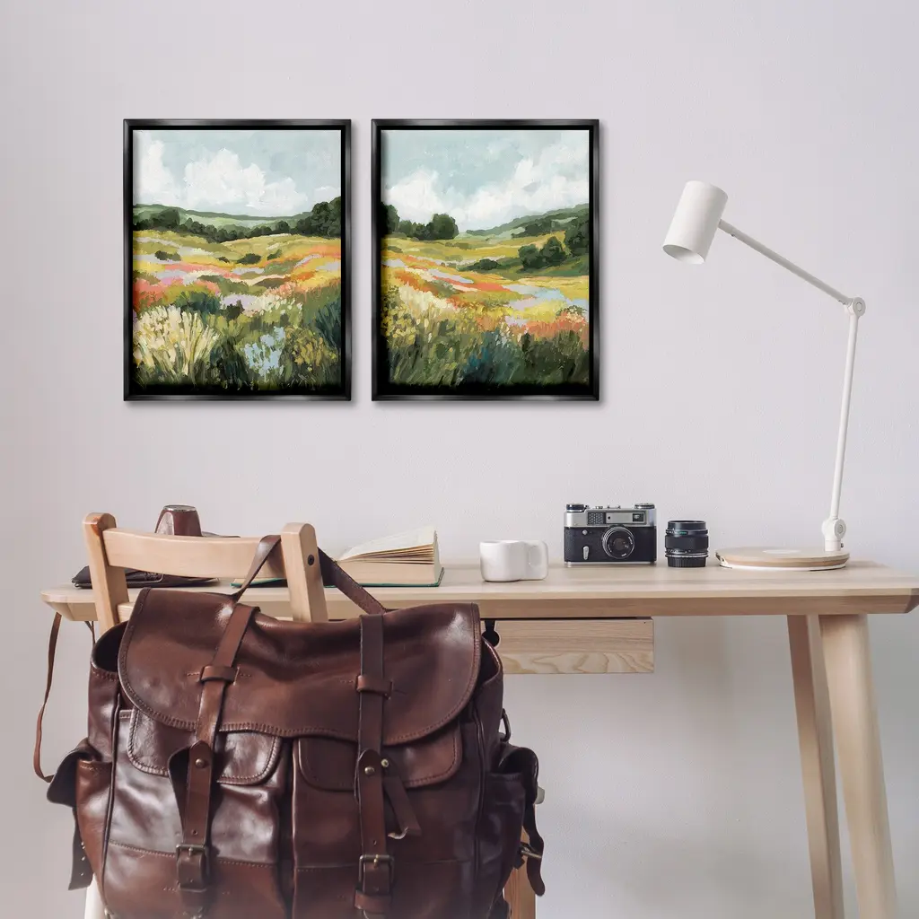 Elevate your home or office to the next level with Stupell Framed Floating Canvas Wall Art. Our premium hand-stretched canvas is mounted securely into a sturdy lightweight frame. The museum-style gap between the wrapped canvas and the box frame gives the illusion of floating artwork. Stupell Wall Art is made in the USA.Features: Dimensions: 2 Piece Set, Each Frame is 17 x 1.7 x 21Two Piece Floater Framed Canvas are available as 17x21 or 25x31 Panels. All Floater Frame Products have a 1.7" Depth.Wall Art is Ready to Hang with Hardware Free Hanging. No Installation required. For Easy Set Up Lean or Layer Artwork on Shelf or Against Wall. Artwork is Permently Fixed into the Frame.Our elevated 1.7" Thick Floating Frame is the perfect complement to our canvas style Wall Art. We use only the highest quality inks in house with industry leading printing solutions. Canvas is hand stretched over a durable wood foundation and then mounted securly into a Modern Box Frame. Made in the USA.Artwork Relates To: Painting, Field, Grassland, Nature, Modern, Meadow, Countryside, Abstract, LandscapeDesign by Victoria Barnes