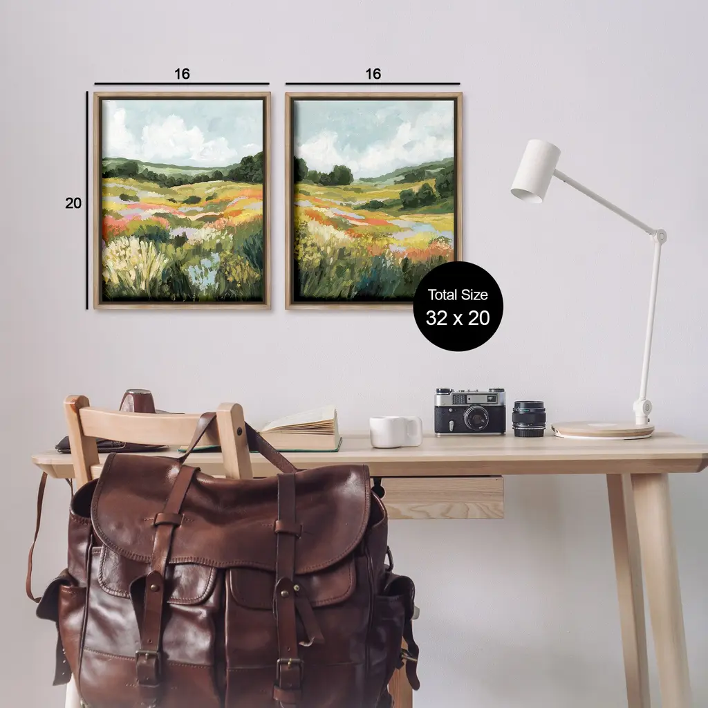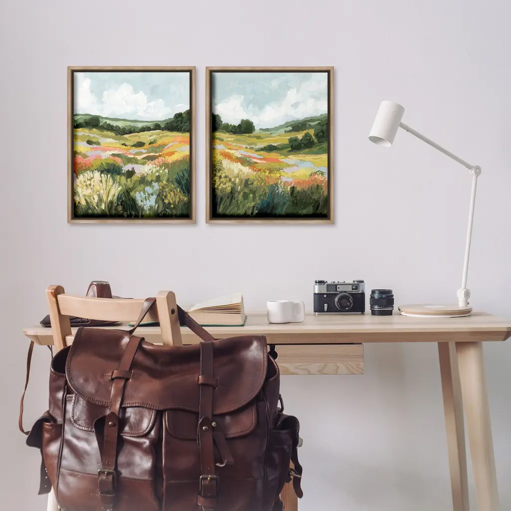 Elevate your home or office to the next level with Stupell Framed Floating Canvas Wall Art. Our premium hand-stretched canvas is mounted securely into a sturdy lightweight frame. The museum-style gap between the wrapped canvas and the box frame gives the illusion of floating artwork. Stupell Wall Art is made in the USA.Features: Dimensions: 2 Piece Set, Each Frame is 17 x 1.7 x 21Two Piece Floater Framed Canvas are available as 17x21 or 25x31 Panels. All Floater Frame Products have a 1.7" Depth.Wall Art is Ready to Hang with Hardware Free Hanging. No Installation required. For Easy Set Up Lean or Layer Artwork on Shelf or Against Wall. Artwork is Permently Fixed into the Frame.Our elevated 1.7" Thick Floating Frame is the perfect complement to our canvas style Wall Art. We use only the highest quality inks in house with industry leading printing solutions. Canvas is hand stretched over a durable wood foundation and then mounted securly into a Modern Box Frame. Made in the USA.Artwork Relates To: Painting, Field, Grassland, Nature, Modern, Meadow, Countryside, Abstract, LandscapeDesign by Victoria Barnes