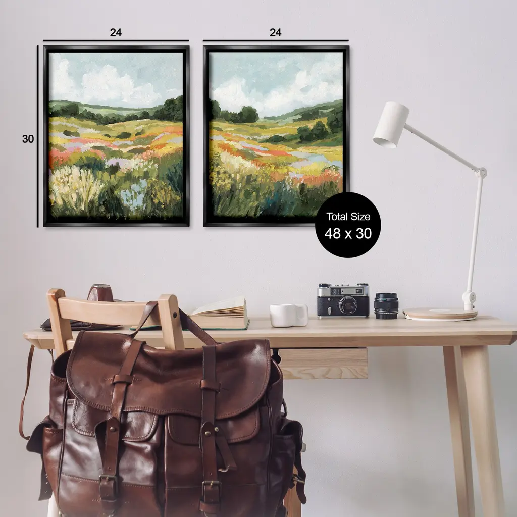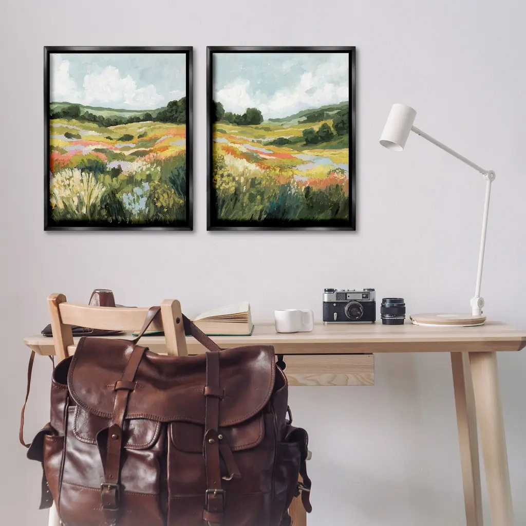 Elevate your home or office to the next level with Stupell Framed Floating Canvas Wall Art. Our premium hand-stretched canvas is mounted securely into a sturdy lightweight frame. The museum-style gap between the wrapped canvas and the box frame gives the illusion of floating artwork. Stupell Wall Art is made in the USA.Features: Dimensions: 2 Piece Set, Each Frame is 17 x 1.7 x 21Two Piece Floater Framed Canvas are available as 17x21 or 25x31 Panels. All Floater Frame Products have a 1.7" Depth.Wall Art is Ready to Hang with Hardware Free Hanging. No Installation required. For Easy Set Up Lean or Layer Artwork on Shelf or Against Wall. Artwork is Permently Fixed into the Frame.Our elevated 1.7" Thick Floating Frame is the perfect complement to our canvas style Wall Art. We use only the highest quality inks in house with industry leading printing solutions. Canvas is hand stretched over a durable wood foundation and then mounted securly into a Modern Box Frame. Made in the USA.Artwork Relates To: Painting, Field, Grassland, Nature, Modern, Meadow, Countryside, Abstract, LandscapeDesign by Victoria Barnes