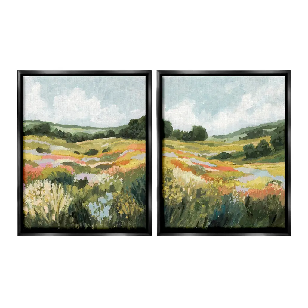 Fill any space in your home or office with our Framed Wall Art Sets. Our framed artwork is securely mounted into a 1.5-inch thick wood grain frame and ready to hang. Frames are available in three alluring styles: black, gray farmhouse and white. Stupell Wall Art is made in the USA.Features: Dimensions: 2 Piece Set, Each Panel is 11 x 1.5 x 14 FramedTwo Piece Framed Giclee Sets are available as 11"x14", 16"x20" or 24"x30" Panels. All Framed Giclee Products have a 1.5" Depth.Wall Art is Ready to Hang with Hardware Free Hanging. No installation required. For Easy Set Up Lean or Layer Artwork on Shelf or Against Wall.Curated Wall Art Sets make it easy for you complete the theme for any room. Our giclée prints are carefully mounted on a durable MDF backing, and then perfectly finished in a 1.5 inch thick woodgrain frame. Mounted frame colors include black, gray farmhouse and white. Made In USA.Artwork Relates To: Painting, Field, Grassland, Nature, Modern, Meadow, Countryside, Abstract, LandscapeDesign by Victoria Barnes