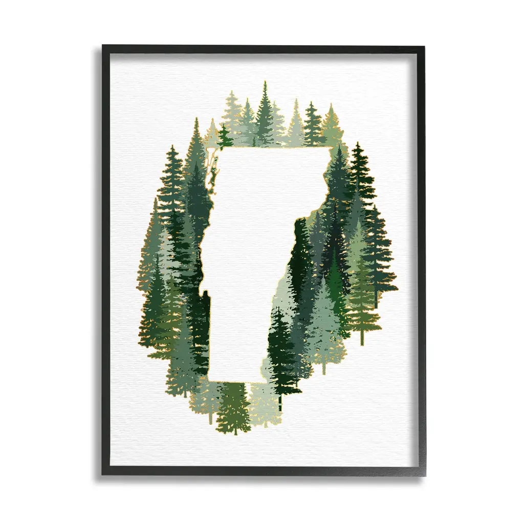 Stupell Vermont State Outline Pine Tree Green Forest Framed Wall Art - 11 X 14 - Grey