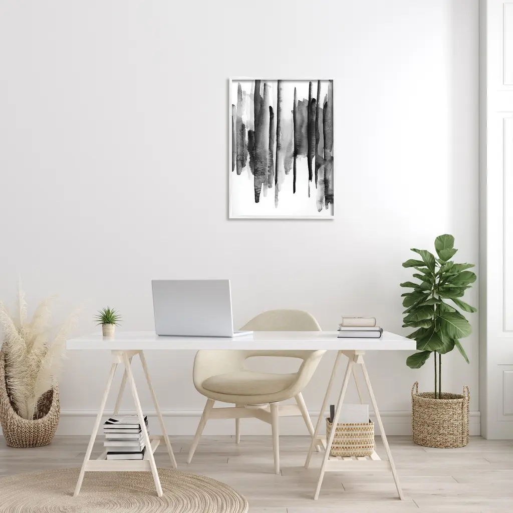 Stupell Vertical Black Ink Strokes Abstract Watercolor Over White Framed Wall Art - 24 X 30 - White