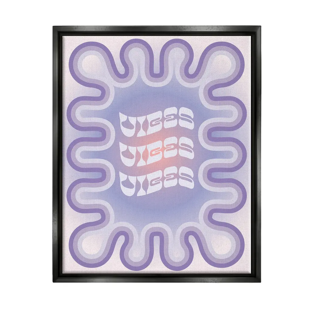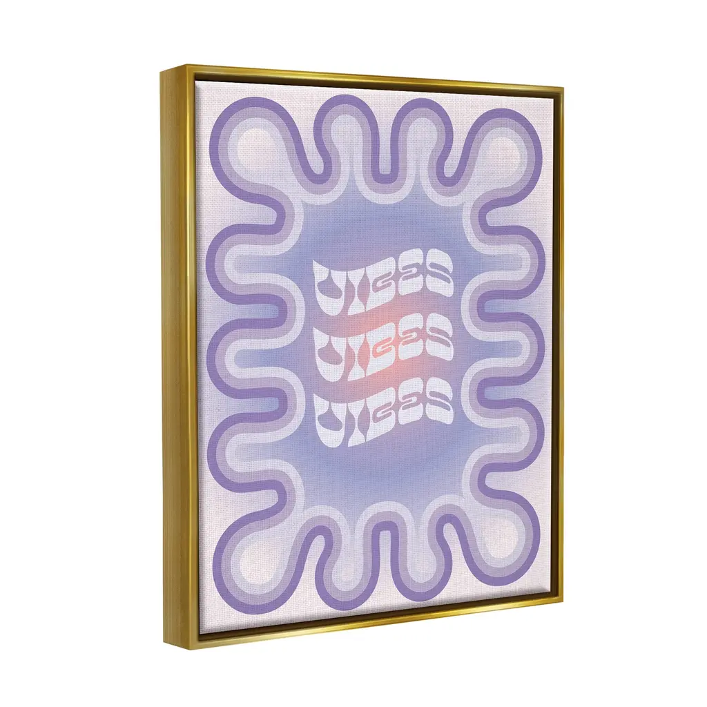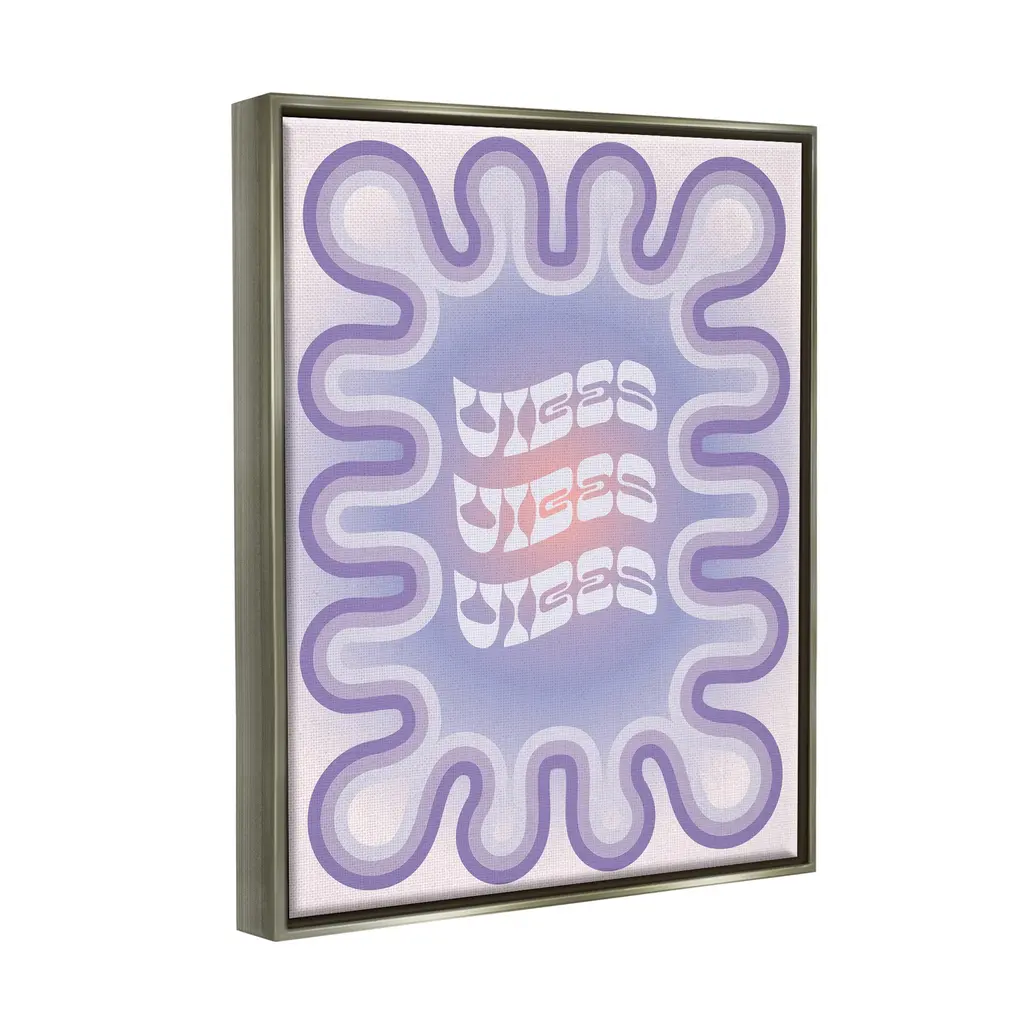 Elevate your home or office to the next level with Stupell Framed Floating Canvas Wall Art. Our premium hand-stretched canvas is mounted securely into a sturdy lightweight frame. The museum-style gap between the wrapped canvas and the box frame gives the illusion of floating artwork. Stupell Wall Art is made in the USA.Features: Dimensions: 17 x 1.7 x 21 Frame, 16 x 1.5 x 20 Canvas ArtFloating Frame Sizes Include Standard: 17 x 1.7 x 21 Oversized: 25 x 1.7 x 31Wall Art is Ready to Hang - No Installation or Hardware Needed. For Easy Set Up Lean or Layer Artwork on Shelf or Against Wall.Our elevated 1.7" Thick Floating Frame is the perfect complement to our canvas style Wall Art. We use only the highest quality inks in house with industry leading printing solutions. Canvas is hand stretched over a durable wood foundation and then mounted securly into a Modern Box Frame. Made in the USA.Artwork Relates To: Groovy, Retro, Purple, Phrase, VibesDesign by Ziwei Li