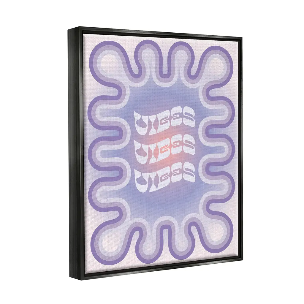 Elevate your home or office to the next level with Stupell Framed Floating Canvas Wall Art. Our premium hand-stretched canvas is mounted securely into a sturdy lightweight frame. The museum-style gap between the wrapped canvas and the box frame gives the illusion of floating artwork. Stupell Wall Art is made in the USA.Features: Dimensions: 17 x 1.7 x 21 Frame, 16 x 1.5 x 20 Canvas ArtFloating Frame Sizes Include Standard: 17 x 1.7 x 21 Oversized: 25 x 1.7 x 31Wall Art is Ready to Hang - No Installation or Hardware Needed. For Easy Set Up Lean or Layer Artwork on Shelf or Against Wall.Our elevated 1.7" Thick Floating Frame is the perfect complement to our canvas style Wall Art. We use only the highest quality inks in house with industry leading printing solutions. Canvas is hand stretched over a durable wood foundation and then mounted securly into a Modern Box Frame. Made in the USA.Artwork Relates To: Groovy, Retro, Purple, Phrase, VibesDesign by Ziwei Li