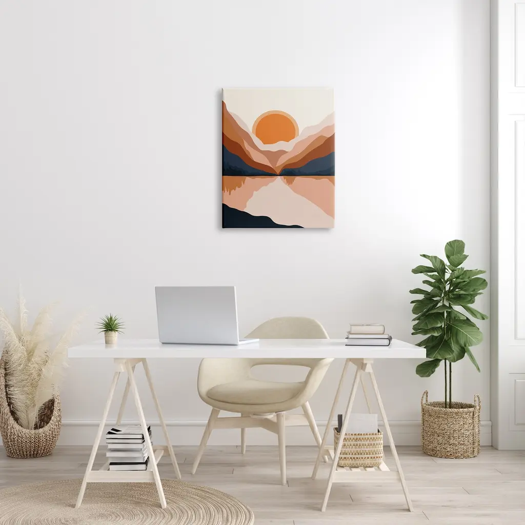 Stupell Vibrant Orange Sunrise Minimal Mountain Lake Abstraction Canvas Wall Art - Off-White - 24 X 30