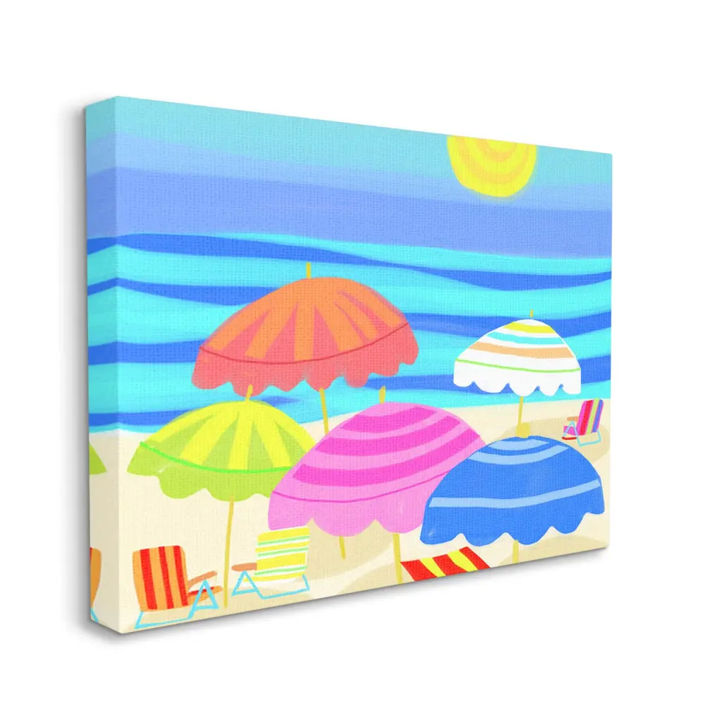 Stupell Vibrant Sun Umbrellas Summer Beach Shore Scene Canvas Wall Art, Design By Maret Hensick - 48 X 36
