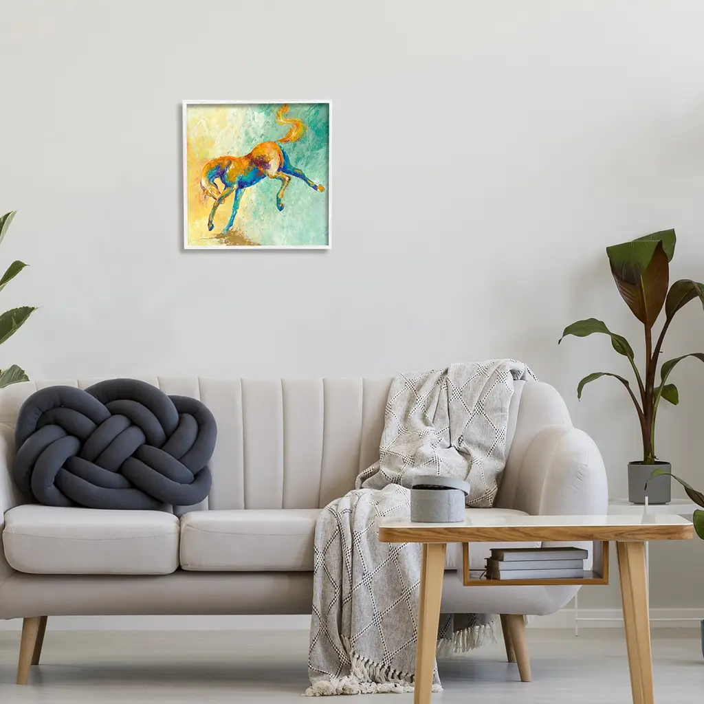 Stupell Vibrant Wild Stallion Horse Jumping Stippled Abstract Framed Wall Art - Green - 17 X 17 - White