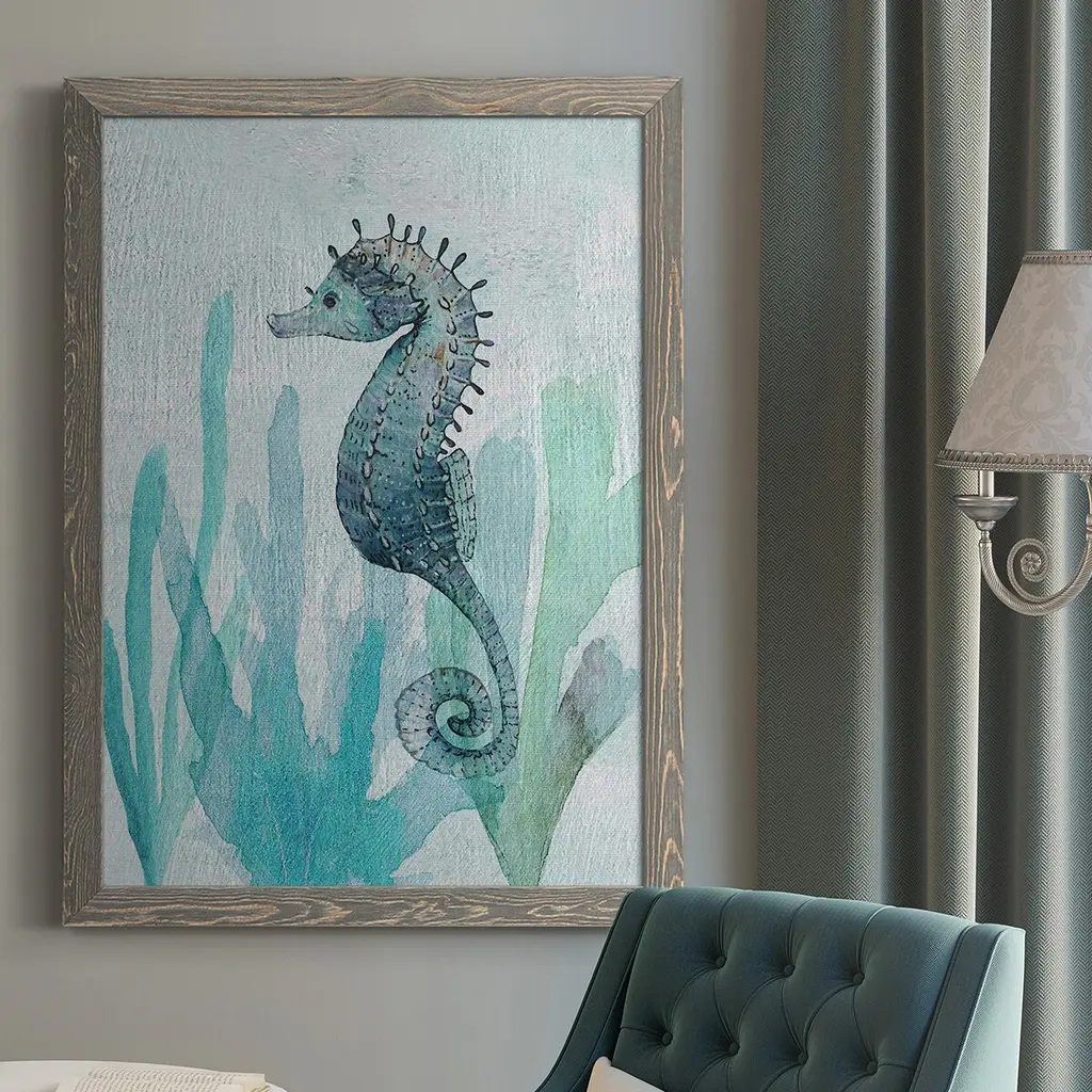 Elevate your home or office to the next level with Stupell Framed Floating Canvas Wall Art. Our premium hand-stretched canvas is mounted securely into a sturdy lightweight frame. The museum-style gap between the wrapped canvas and the box frame gives the illusion of floating artwork. Stupell Wall Art is made in the USA.Features: Dimensions: 11 x 1.7 x 25 Frame, 10 x 1.5 x 24 Canvas ArtFloating Frame Canvas Products are available in sizes 11"x25" and 14"x31". All Floating Frame Canvas Products have a 1.7" Depth.Wall Art is Ready to Hang with Hardware Free Hanging. No Installation required. For Easy Set Up Lean or Layer Artwork on Shelf or Against Wall. Artwork is Permently Fixed into the Frame.Our elevated 1.7" Thick Floating Frame is the perfect complement to our canvas style Wall Art. We use only the highest quality inks in house with industry leading printing solutions. Canvas is hand stretched over a durable wood foundation and then mounted securly into a Modern Box Frame. Made in the USA.Artwork Relates To: Animal, Sea Life, Conch, Seashell, Ocean, Beach, Tide, Waves, Nautical, Coastal, Sand, SeahorseDesign by Carol Robinson