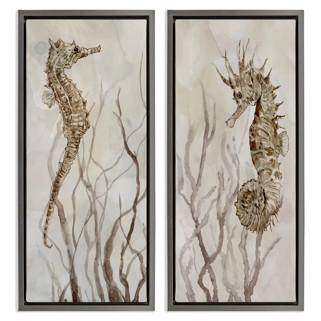 Stupell Vigilant Seahorse Ocean Wildlife Framed Floater Canvas Wall Art Design By Carol Robinson - 11 X 25 - Grey