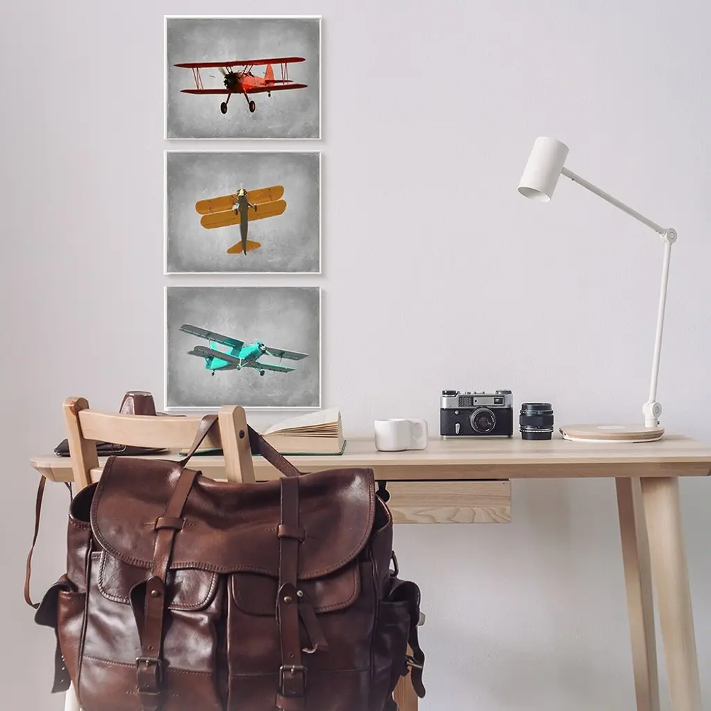 Stupell Vintage Airplanes At Flight Red Yellow Blue, 3Pc Multi Piece Canvas Wall Art Set - 16 X 20