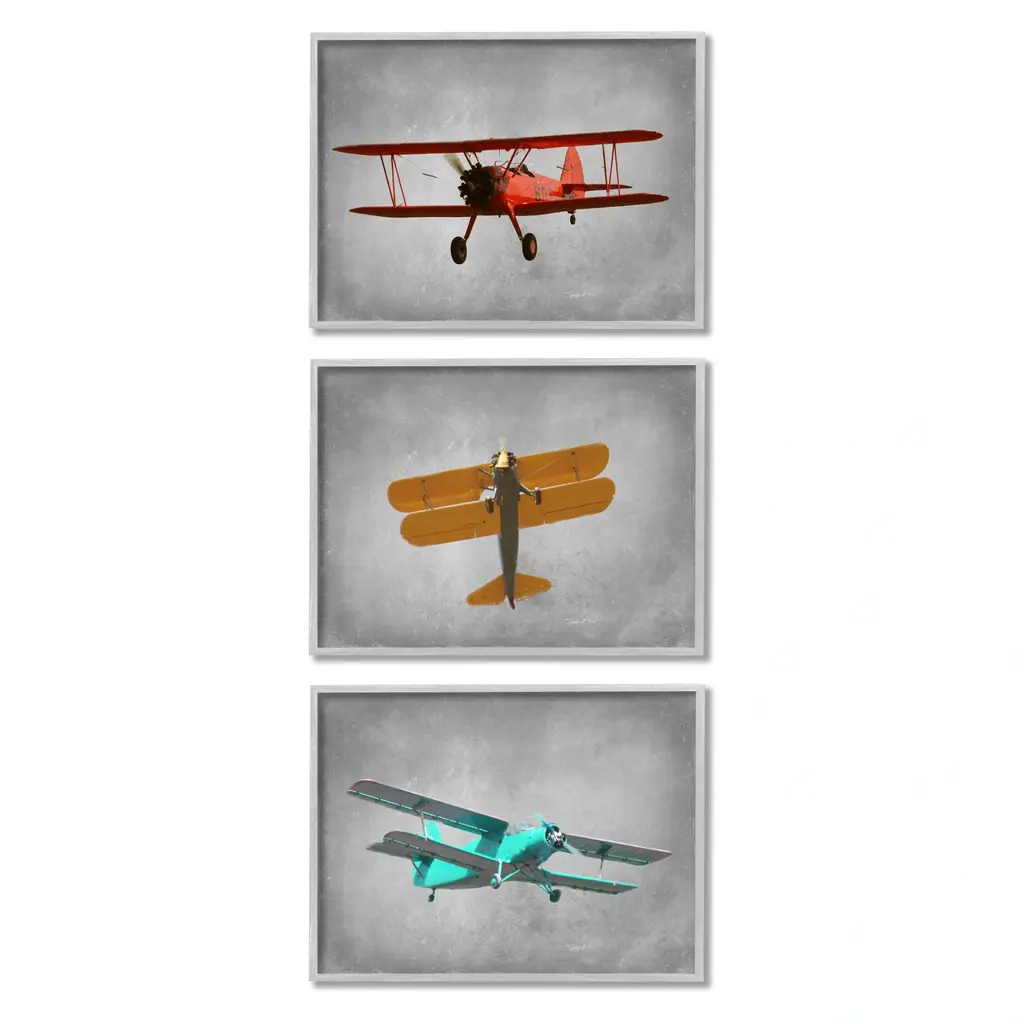 Stupell Vintage Airplanes At Flight Red Yellow Blue, 3Pc Multi Piece Framed Wall Art Set - 11 X 14 - Black