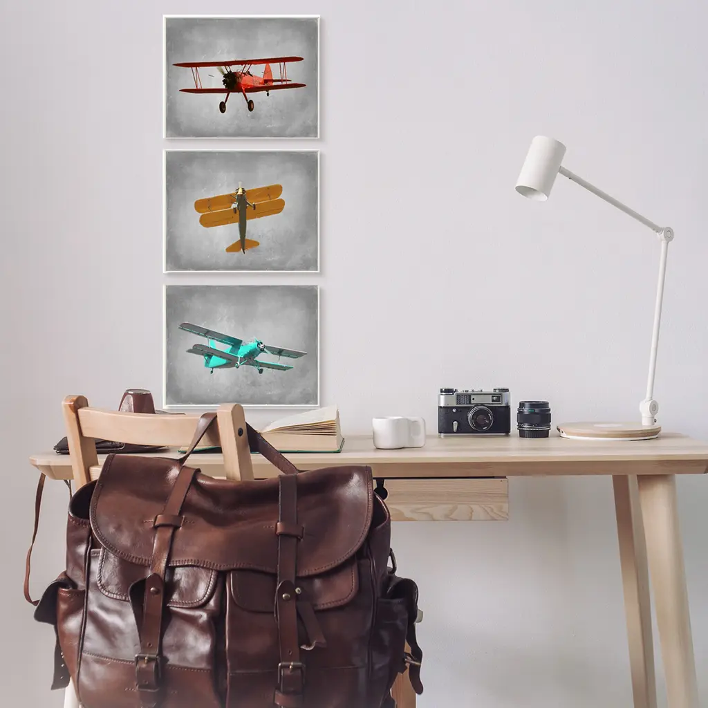Stupell Vintage Airplanes At Flight Red Yellow Blue, 3Pc Multi Piece Framed Wall Art Set - 16 X 20 - Grey
