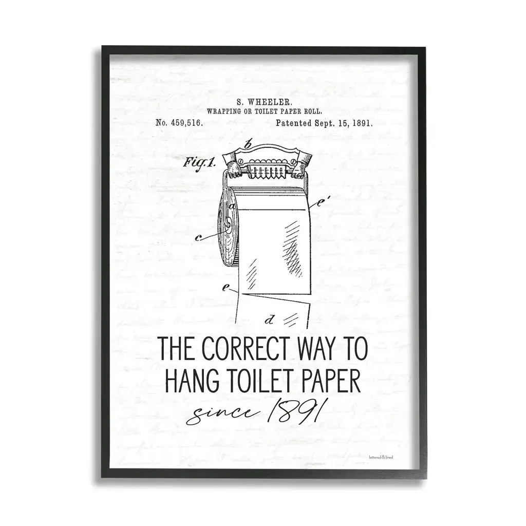 Stupell Vintage Bathroom Diagram Correct Way Hang Toilet Paper Framed Wall Art - Black - 11 X 14 - Grey