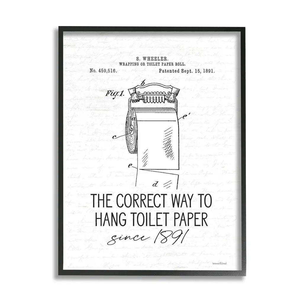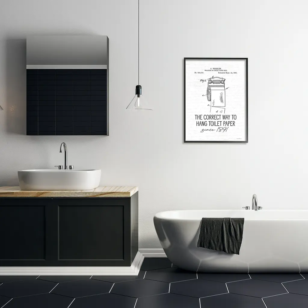 Stupell Vintage Bathroom Diagram Correct Way Hang Toilet Paper Framed Wall Art - Black - 16 X 20 - Grey
