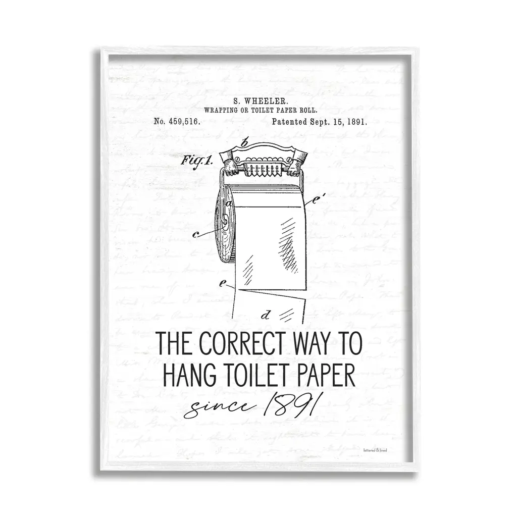 Stupell Vintage Bathroom Diagram Correct Way Hang Toilet Paper Framed Wall Art - Black - 24 X 30 - Grey