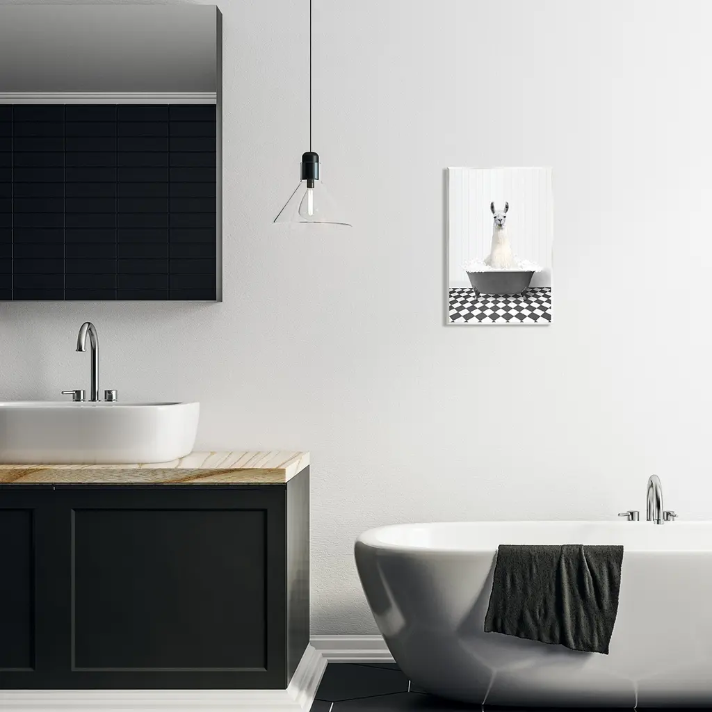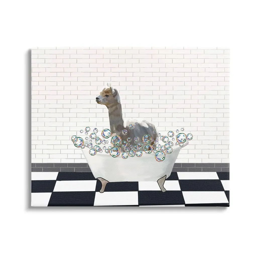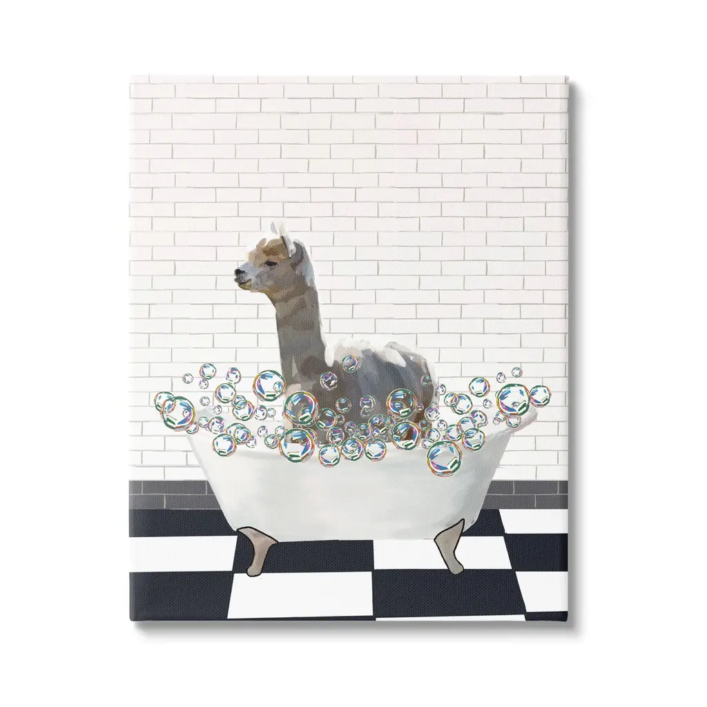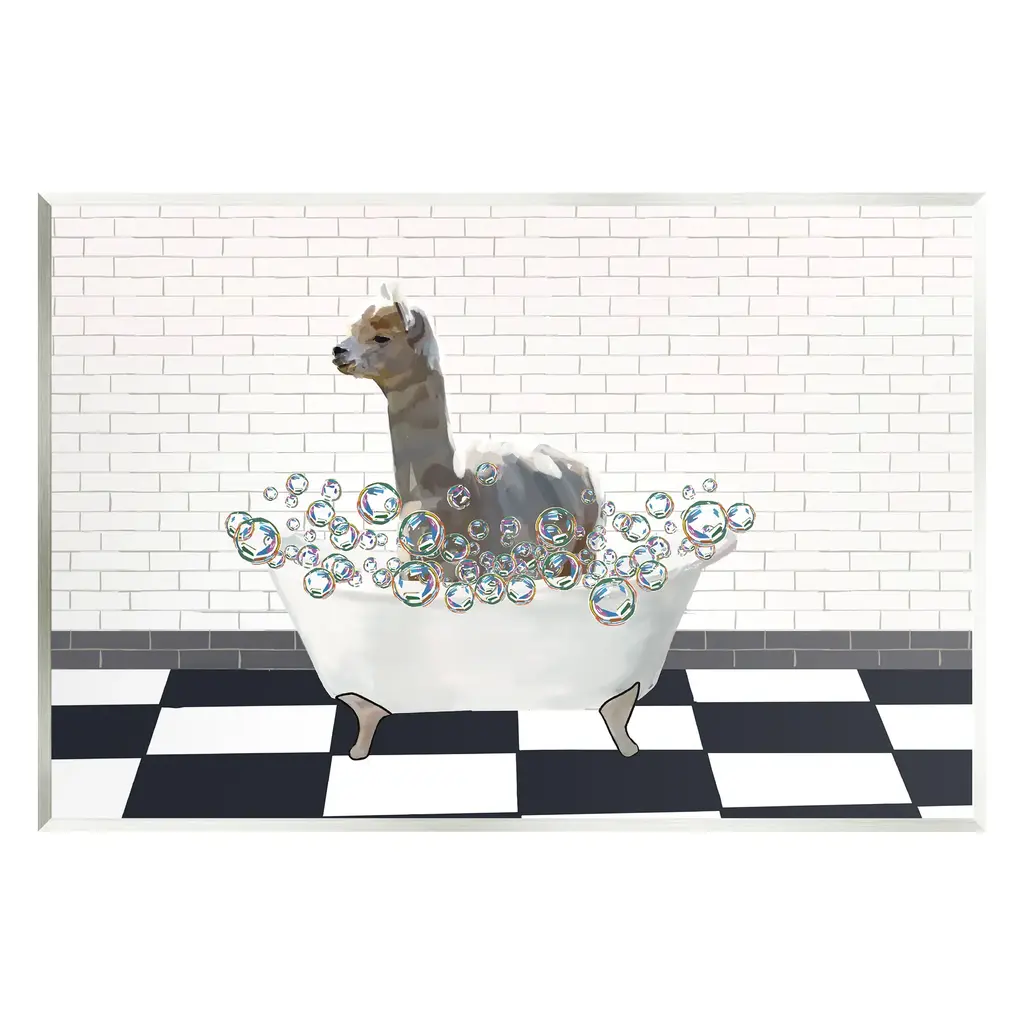 Our wall plaques start as high-quality lithograph prints mounted on durable 0.5-inch thick MDF wood. Each piece is hand finished and comes with a fresh layer of white foil on the sides to give it a crisp, clean look. Plaques arrive ready to hang without installation and come with removable plastic corners to keep them from damage in transit. Stupell Wall Art is made in the USA.Features: Dimensions: 10 x 0.5 x 15 InchesWall Plaque Sizes Include Standard: 10 x 0.5 x 15 Oversized: 13 x 0.5 x 19Wall Art is Ready to Hang with Hardware Free Hanging. No installation required. For Easy Set Up Lean or Layer Artwork on Shelf or Against Wall.All of our wall plaques start off as high quality lithograph prints that are then mounted on durable 0.5 inch thick MDF wood. Each piece is hand finished and comes with a fresh layer of foil on the sides to give it a crisp clean look. Made In USA.Artwork Relates To: Animal, Mammal, Wildlife, Bathroom, Rustic, Bathtub, LlamaDesign by Lettered and Lined
