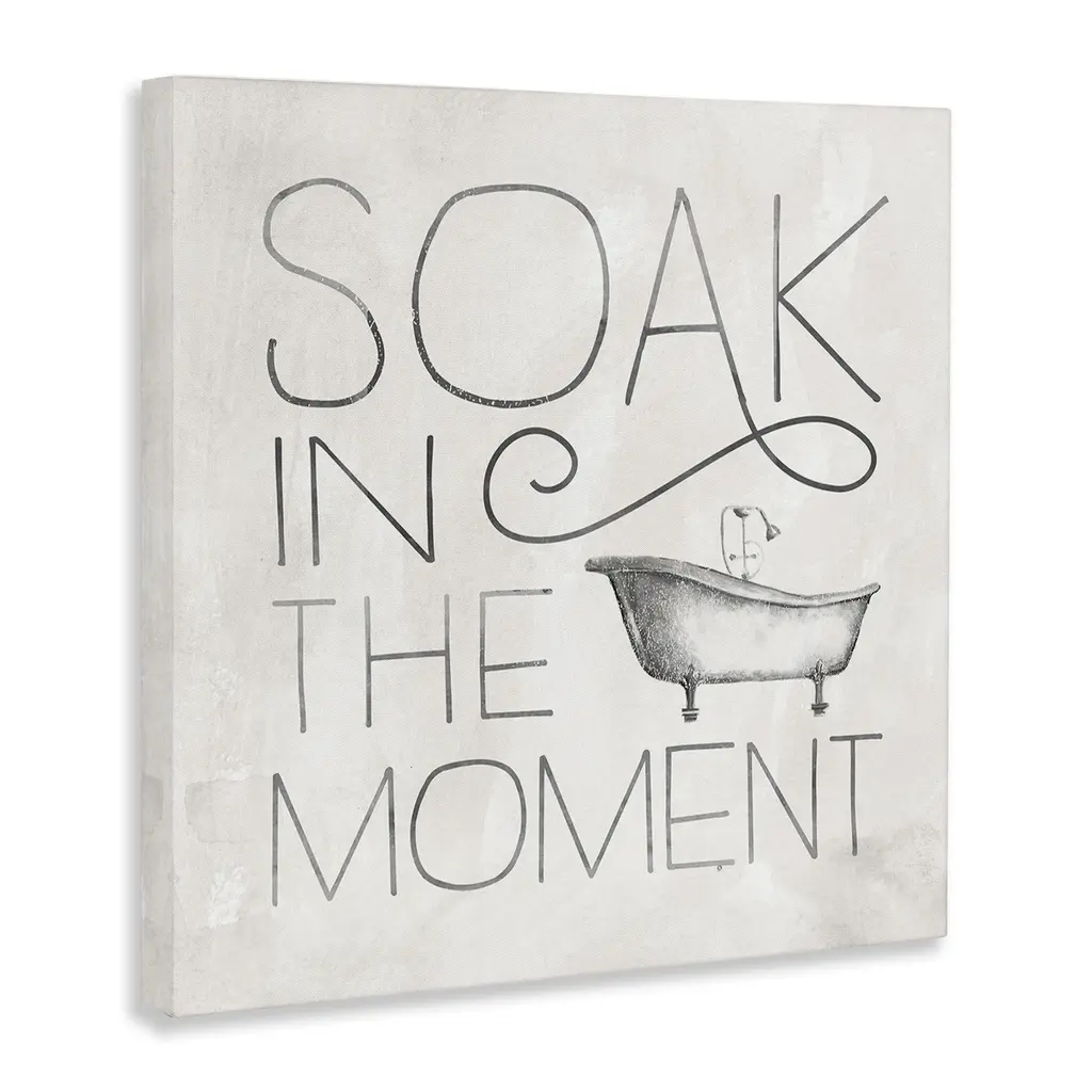 Stupell Vintage Bathroom Soak In The Moment Phrase Canvas Wall Art - Grey - 30 X 30
