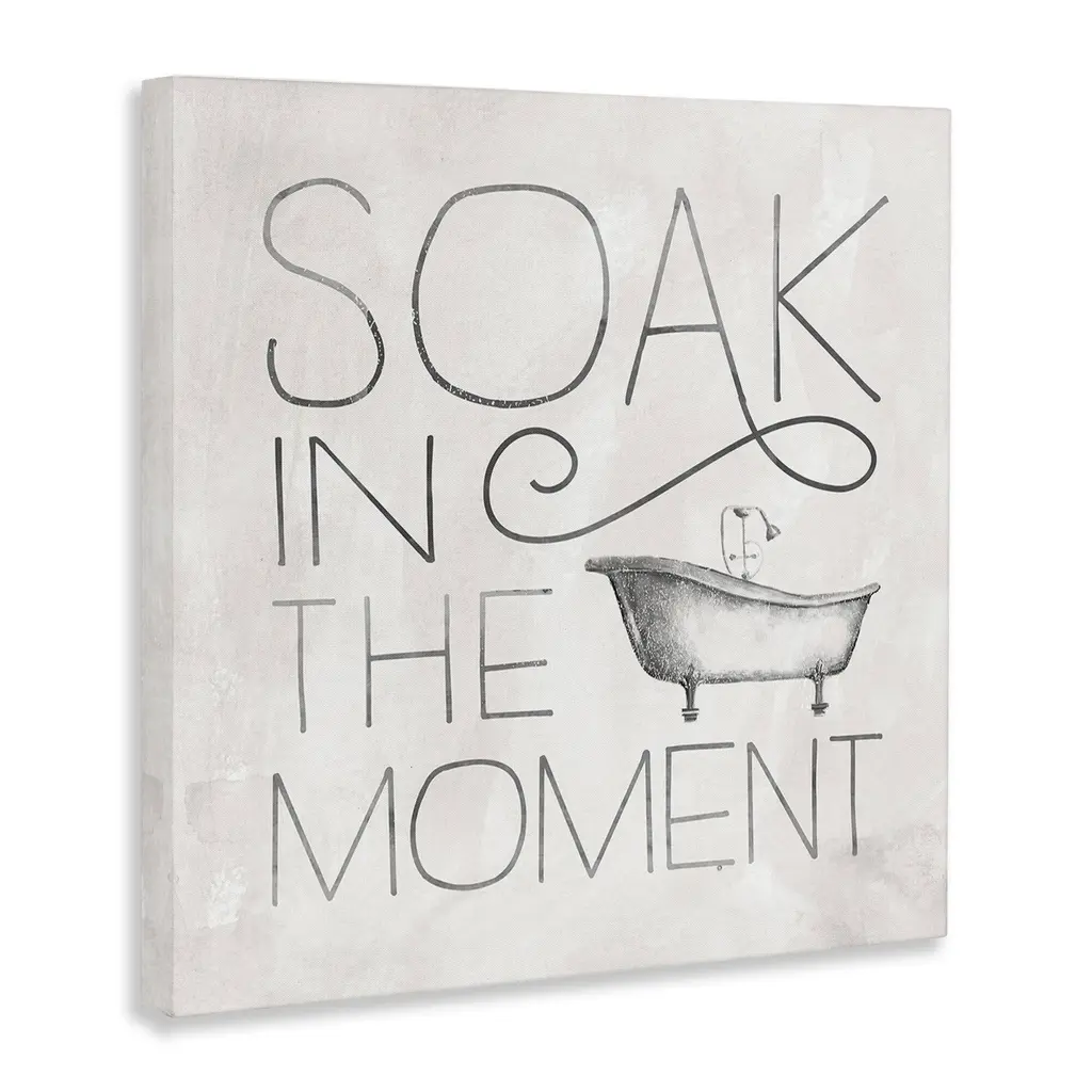 Stupell Vintage Bathroom Soak In The Moment Phrase Canvas Wall Art - Grey - 36 X 36