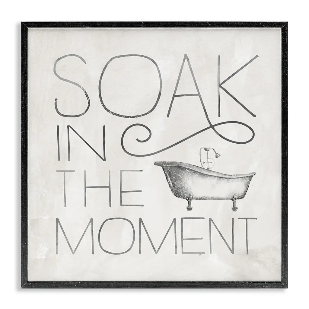 Stupell Vintage Bathroom Soak In The Moment Phrase Framed Wall Art - Grey - 17 X 17 - White