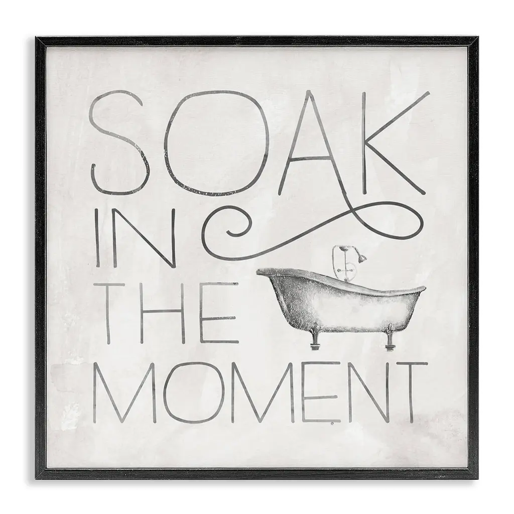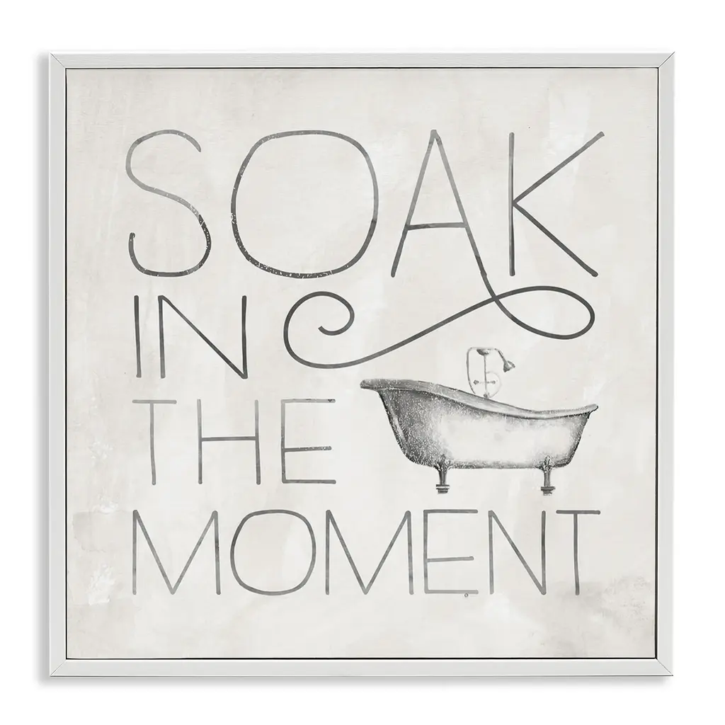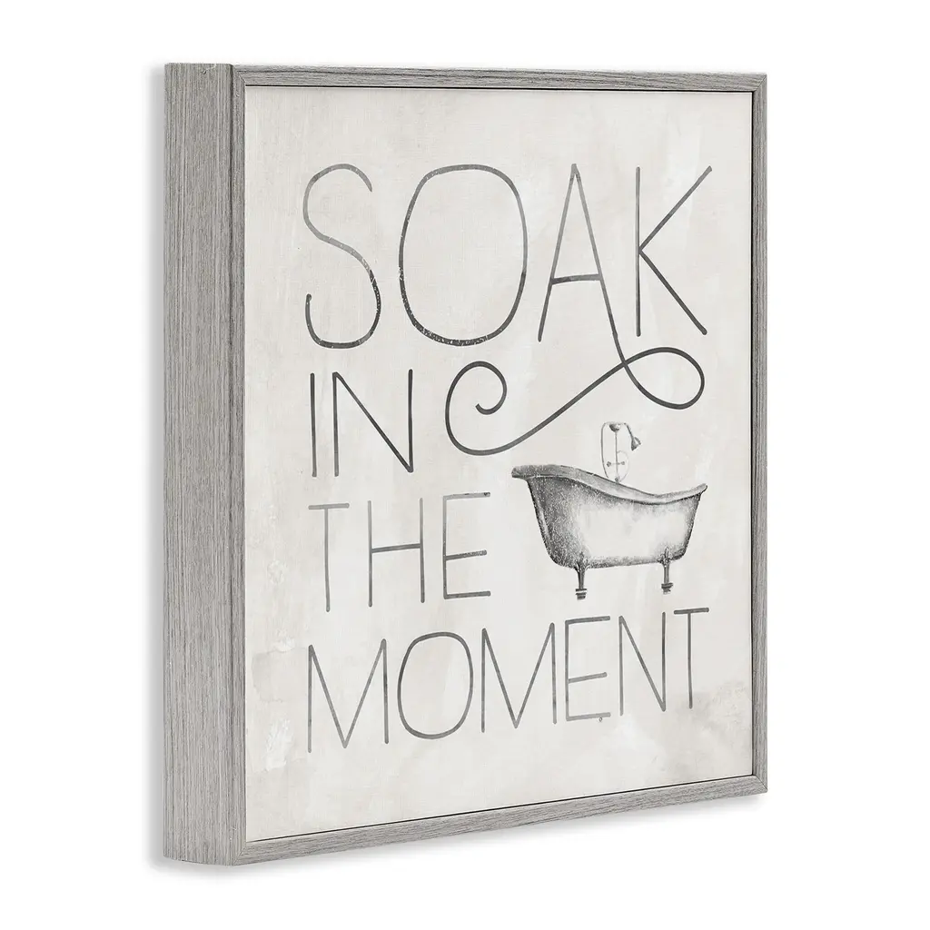 Stupell Vintage Bathroom Soak In The Moment Phrase Framed Wall Art - Grey - 24 X 24 - Grey