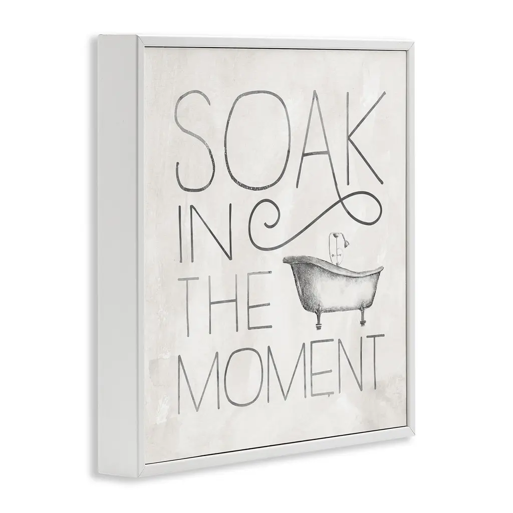 Stupell Vintage Bathroom Soak In The Moment Phrase Framed Wall Art - Grey - 24 X 24 - White