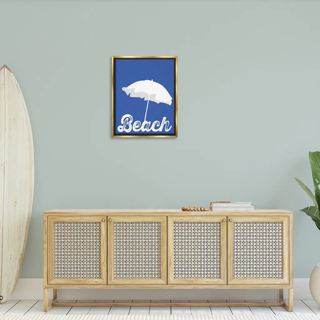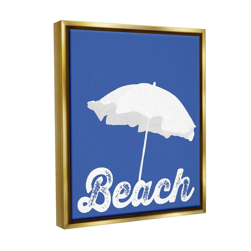 Elevate your home or office to the next level with Stupell Framed Floating Canvas Wall Art. Our premium hand-stretched canvas is mounted securely into a sturdy lightweight frame. The museum-style gap between the wrapped canvas and the box frame gives the illusion of floating artwork. Stupell Wall Art is made in the USA.Features: Dimensions: 17 x 1.7 x 21 Frame, 16 x 1.5 x 20 Canvas ArtFloating Frame Canvas Products are available in sizes 17"x21" and 25"x31". All Floating Frame Canvas Products have a 1.7" Depth.Wall Art is Ready to Hang with Hardware Free Hanging. No Installation required. For Easy Set Up Lean or Layer Artwork on Shelf or Against Wall. Artwork is Permently Fixed into the Frame.Our elevated 1.7" Thick Floating Frame is the perfect complement to our canvas style Wall Art. We use only the highest quality inks in house with industry leading printing solutions. Canvas is hand stretched over a durable wood foundation and then mounted securly into a Modern Box Frame. Made in the USA.Artwork Relates To: Umbrella, Beach, Vintage, Phrase, Beach Umbrella, Blue, ModernDesign by GraffiTee Studios