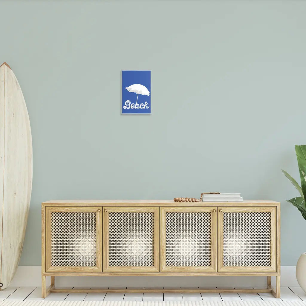 Our wall plaques start as high-quality lithograph prints mounted on durable 0.5-inch thick MDF wood. Each piece is hand finished and comes with a fresh layer of white foil on the sides to give it a crisp, clean look. Plaques arrive ready to hang without installation and come with removable plastic corners to keep them from damage in transit. Stupell Wall Art is made in the USA.Features: Dimensions: 10 x 0.5 x 15 InchesWall Plaque Product Sizes Include 10"x15" and 13"x19". All wall plaque products have a 0.5" Depth. Wall Art is Ready to Hang with Hardware Free Hanging. No installation required. For Easy Set Up Lean or Layer Artwork on Shelf or Against Wall.All of our wall plaques start off as high quality lithograph prints that are then mounted on durable 0.5 inch thick MDF wood. Each piece is hand finished and comes with a fresh layer of foil on the sides to give it a crisp clean look. Made In USA.Artwork Relates To: Umbrella, Beach, Vintage, Phrase, Beach Umbrella, Blue, ModernDesign by GraffiTee Studios