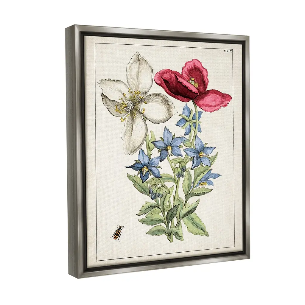 Stupell Vintage Beetle & Flowers Framed Floater Canvas Wall Art Design By World Art Group - 17 X 21 - Grey