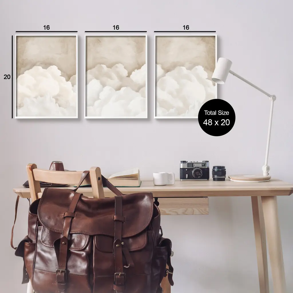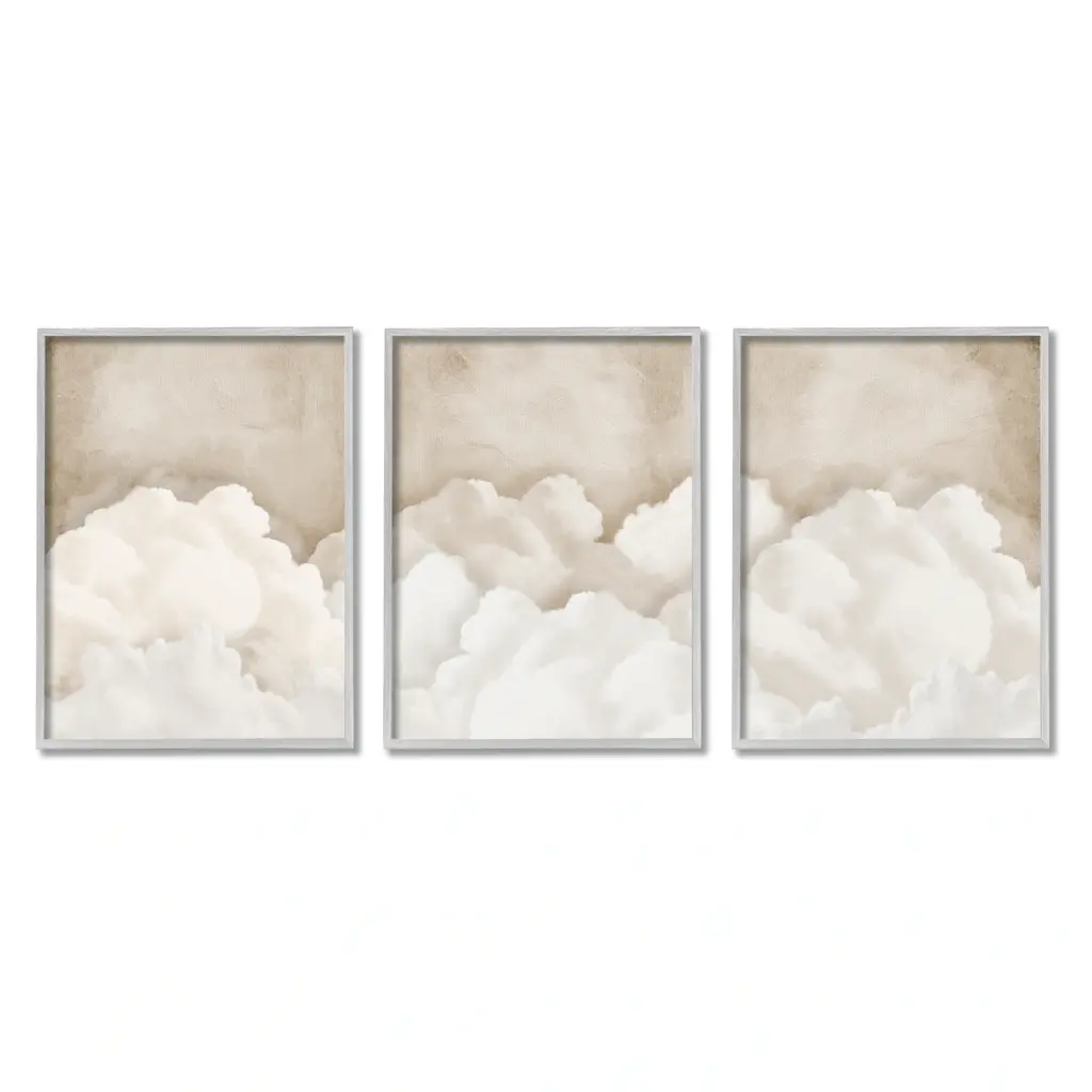 Stupell Vintage Beige Clouds 3 Piece Framed Giclee Art Set Design By Ros Ruseva - 16 X 20 - White