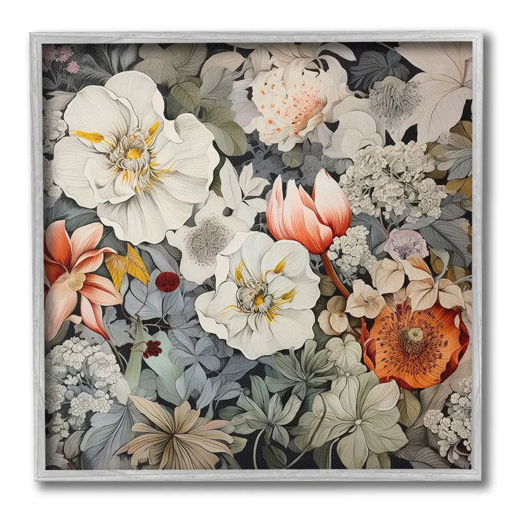 Add dimension to any room with our textured Framed Giclee Artwork. Our framed artwork is securely mounted into a 1.5-inch thick wood grain frame and ready to hang. Frames are available in three alluring styles: black, gray farmhouse and white. In addition, you should check out our oversized options if you want a statement piece. Stupell Wall Art is made in the USA.Features: Dimensions: 12 x 1.5 x 12 FramedFramed Giclee Product Sizes Include 12"x12", 17"x17", and 24"x24". Framed Giclee Products have a 1.5" Depth. Wall Art is Ready to Hang with Hardware Free Hanging. No installation required. For Easy Set Up Lean or Layer Artwork on Shelf or Against Wall.Our giclée prints are carefully mounted on a durable MDF backing, and then perfectly finished in a 1.5 inch thick woodgrain frame. Mounted frame colors include black, gray farmhouse and white. Made In USA.Artwork Relates To: Floral, Pattern, Flower, Petal, Plant, Vintage, Blossom, BloomDesign by Lazar Studio