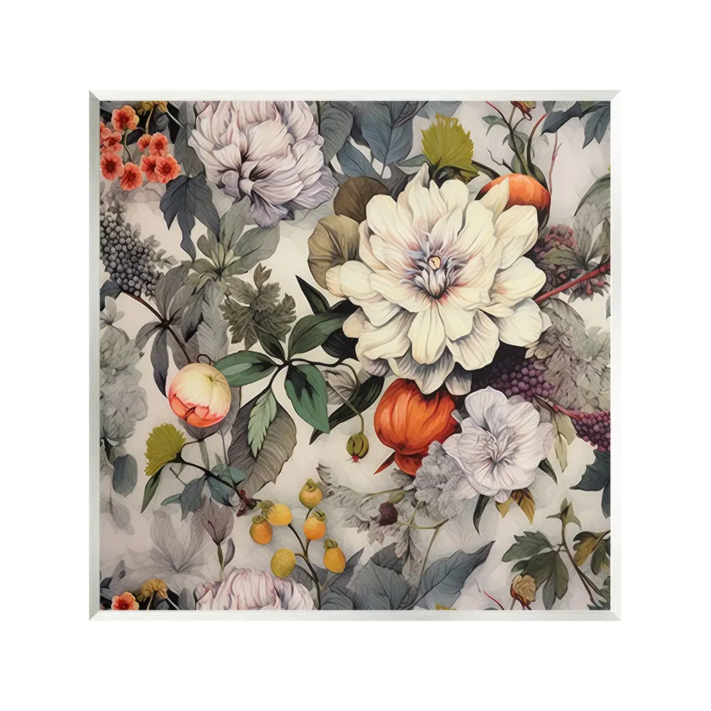 Stupell Vintage Blooms & Fruit Framed Giclee Art Design By Lazar Studio - 24 X 24 - Grey