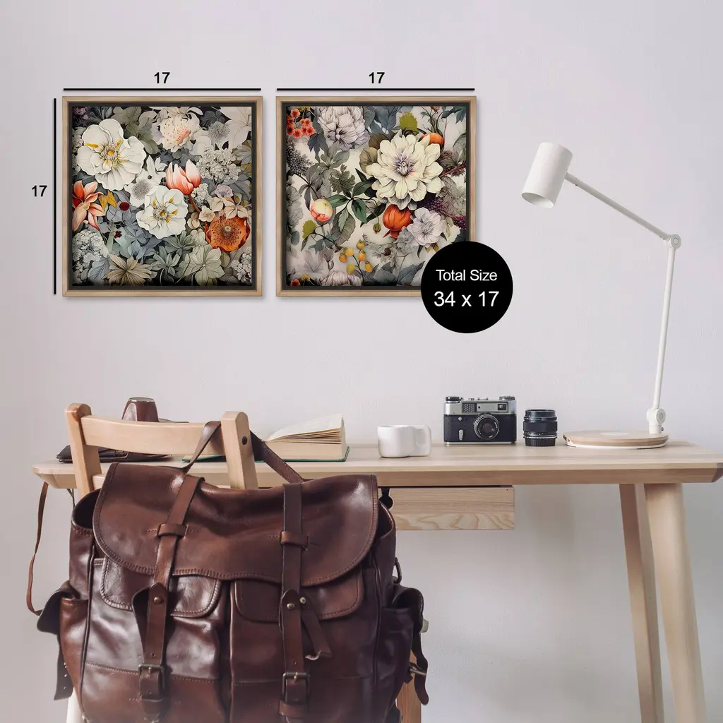 Elevate your home or office to the next level with Stupell Framed Floating Canvas Wall Art. Our premium hand-stretched canvas is mounted securely into a sturdy lightweight frame. The museum-style gap between the wrapped canvas and the box frame gives the illusion of floating artwork. Stupell Wall Art is made in the USA.Features: Dimensions: 2 Piece Set, Each Frame is 18 x 1.7 x 18Two Piece Floating Frame Canvas Products are available as 18"x18" or 25"x25" Panels. All Floating Frame Canvas Products have a 1.7" Depth.Wall Art is Ready to Hang with Hardware Free Hanging. No Installation required. For Easy Set Up Lean or Layer Artwork on Shelf or Against Wall. Artwork is Permently Fixed into the Frame.Our elevated 1.7" Thick Floating Frame is the perfect complement to our canvas style Wall Art. We use only the highest quality inks in house with industry leading printing solutions. Canvas is hand stretched over a durable wood foundation and then mounted securly into a Modern Box Frame. Made in the USA.Artwork Relates To: Floral, Pattern, Flower, Petal, Plant, Vintage, Botanical, BouquetDesign by Lazar Studio