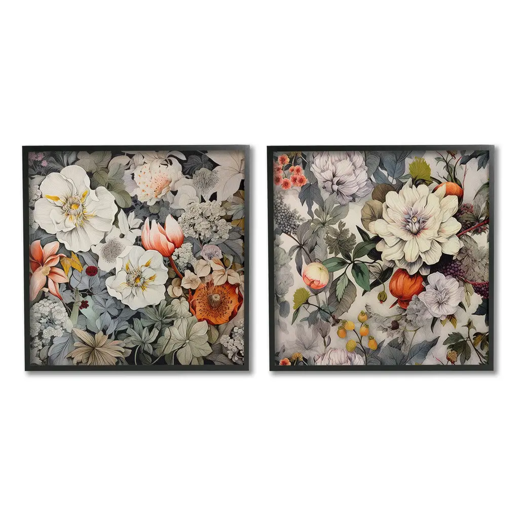Fill any space in your home or office with our Framed Wall Art Sets. Our framed artwork is securely mounted into a 1.5-inch thick wood grain frame and ready to hang. Frames are available in three alluring styles: black, gray farmhouse and white. Stupell Wall Art is made in the USA.Features: Dimensions: 2 Piece Set, Each Panel is 12 x 1.5 x 12 FramedTwo Piece Framed Giclee Sets are available as 12"x12", 17"x17" or 24"x24" Panels. All Framed giclee Products have a 1.5" Depth.Wall Art is Ready to Hang with Hardware Free Hanging. No installation required. For Easy Set Up Lean or Layer Artwork on Shelf or Against Wall.Curated Wall Art Sets make it easy for you complete the theme for any room. Our giclée prints are carefully mounted on a durable MDF backing, and then perfectly finished in a 1.5 inch thick woodgrain frame. Mounted frame colors include black, gray farmhouse and white. Made In USA.Artwork Relates To: Floral, Pattern, Flower, Petal, Plant, Vintage, Botanical, BouquetDesign by Lazar Studio