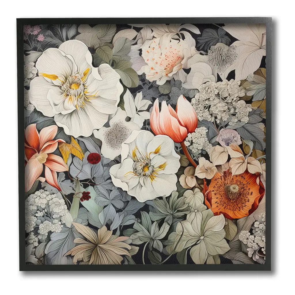 Add dimension to any room with our textured Framed Giclee Artwork. Our framed artwork is securely mounted into a 1.5-inch thick wood grain frame and ready to hang. Frames are available in three alluring styles: black, gray farmhouse and white. In addition, you should check out our oversized options if you want a statement piece. Stupell Wall Art is made in the USA.Features: Dimensions: 12 x 1.5 x 12 FramedFramed Giclee Product Sizes Include 12"x12", 17"x17", and 24"x24". Framed Giclee Products have a 1.5" Depth. Wall Art is Ready to Hang with Hardware Free Hanging. No installation required. For Easy Set Up Lean or Layer Artwork on Shelf or Against Wall.Our giclée prints are carefully mounted on a durable MDF backing, and then perfectly finished in a 1.5 inch thick woodgrain frame. Mounted frame colors include black, gray farmhouse and white. Made In USA.Artwork Relates To: Floral, Pattern, Flower, Petal, Plant, Vintage, Blossom, BloomDesign by Lazar Studio