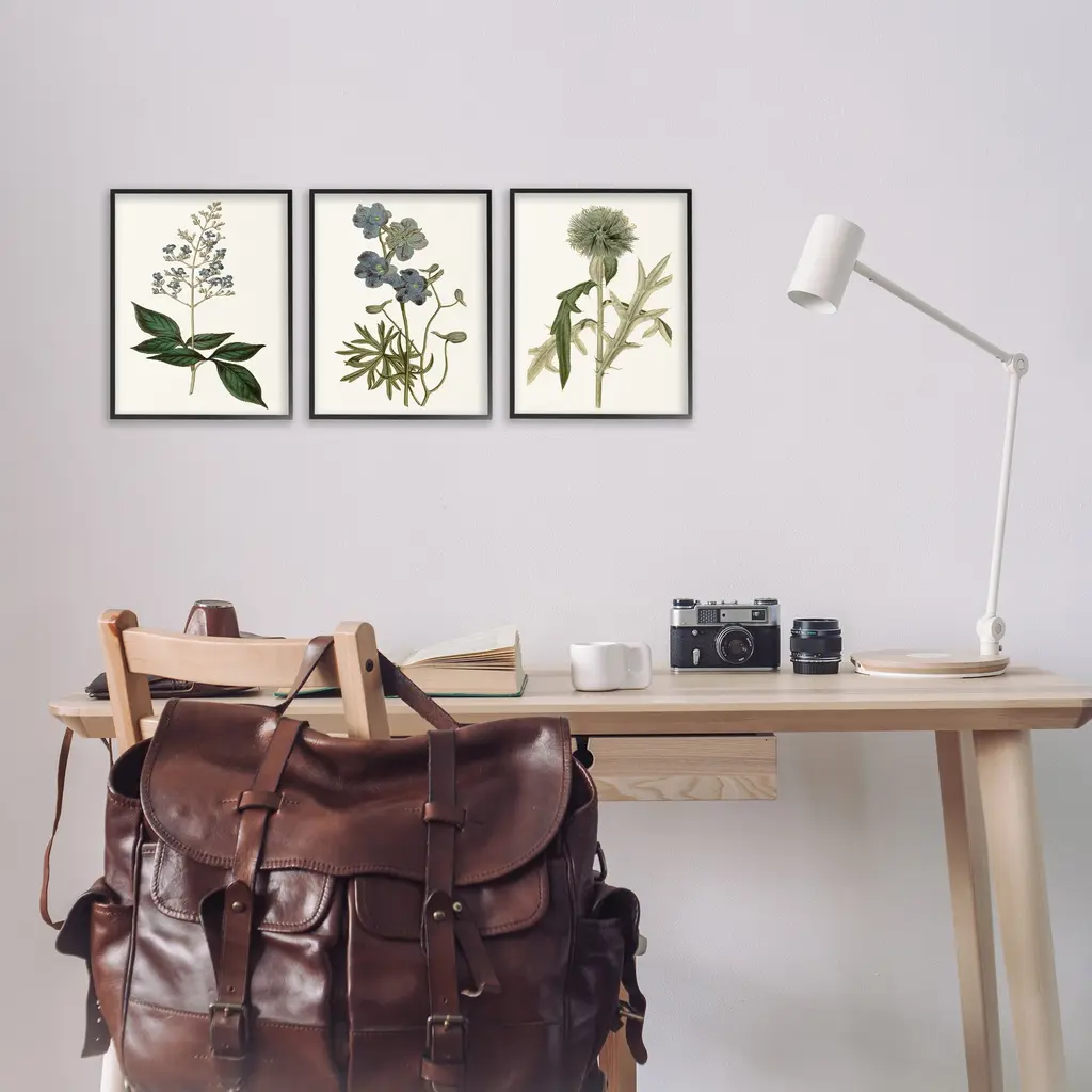 Stupell Vintage Blue Botanical Flowers On Beige, 3Pc Multi Piece Framed Wall Art Set - 11 X 14 - Black