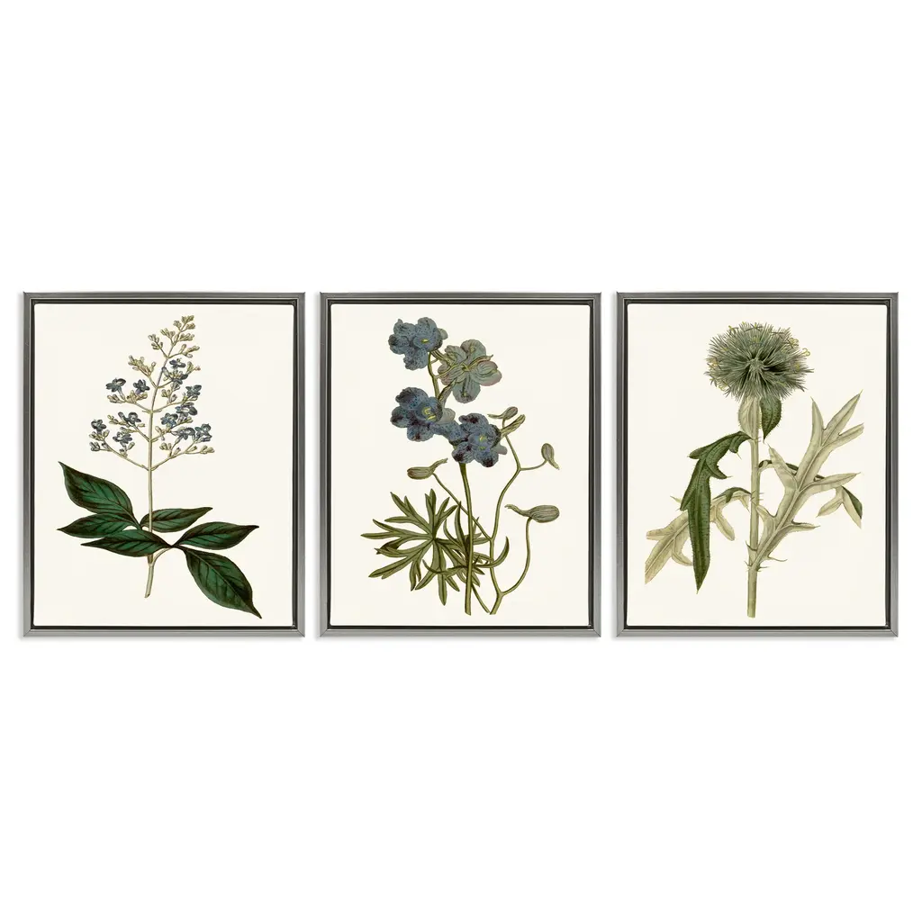 Elevate your home or office to the next level with Stupell Framed Floating Canvas Wall Art. Our premium hand-stretched canvas is mounted securely into a sturdy lightweight frame. The museum-style gap between the wrapped canvas and the box frame gives the illusion of floating artwork. Stupell Wall Art is made in the USA.Features: Dimensions: 3 Piece Set, Each Frame is 17 x 1.7 x 21Three Piece Floater Framed Canvas are available as 17x21 or 25x31 Panels. All Floater Frame Products have a 1.7" Depth.Wall Art is Ready to Hang with Hardware Free Hanging. No Installation required. For Easy Set Up Lean or Layer Artwork on Shelf or Against Wall. Artwork is Permently Fixed into the Frame.Our elevated 1.7" Thick Floating Frame is the perfect complement to our canvas style Wall Art. We use only the highest quality inks in house with industry leading printing solutions. Canvas is hand stretched over a durable wood foundation and then mounted securly into a Modern Box Frame. Made in the USA.Artwork Relates To: Flower, Floral, Herb, Latin Study, VintageDesign by Curtis