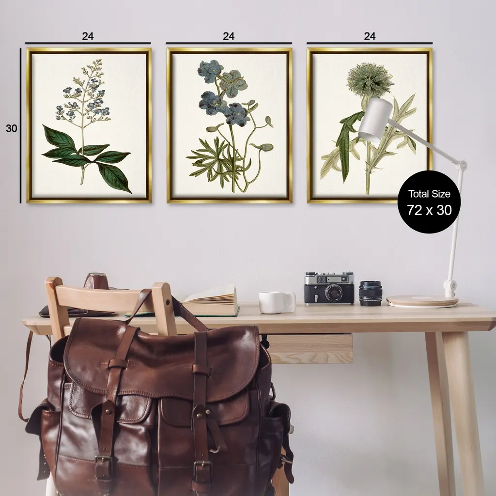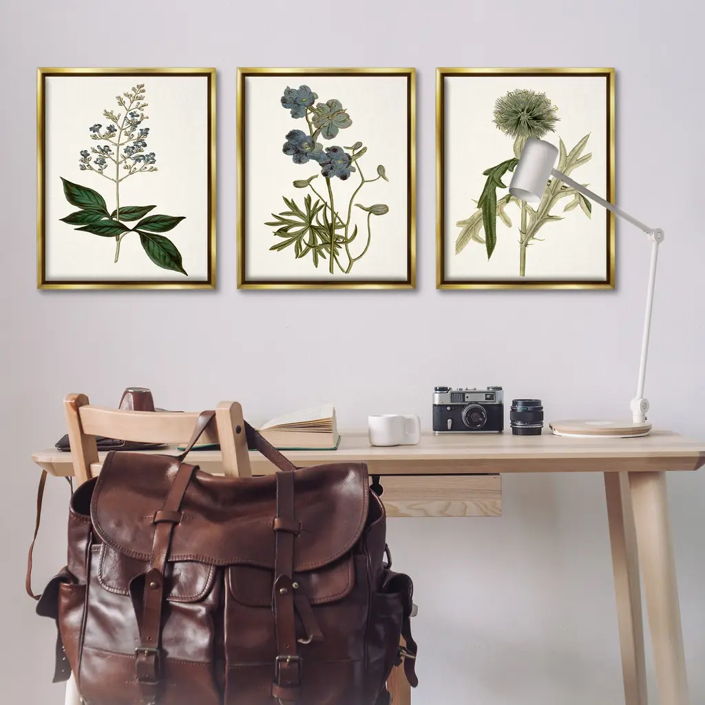 Elevate your home or office to the next level with Stupell Framed Floating Canvas Wall Art. Our premium hand-stretched canvas is mounted securely into a sturdy lightweight frame. The museum-style gap between the wrapped canvas and the box frame gives the illusion of floating artwork. Stupell Wall Art is made in the USA.Features: Dimensions: 3 Piece Set, Each Frame is 17 x 1.7 x 21Three Piece Floater Framed Canvas are available as 17x21 or 25x31 Panels. All Floater Frame Products have a 1.7" Depth.Wall Art is Ready to Hang with Hardware Free Hanging. No Installation required. For Easy Set Up Lean or Layer Artwork on Shelf or Against Wall. Artwork is Permently Fixed into the Frame.Our elevated 1.7" Thick Floating Frame is the perfect complement to our canvas style Wall Art. We use only the highest quality inks in house with industry leading printing solutions. Canvas is hand stretched over a durable wood foundation and then mounted securly into a Modern Box Frame. Made in the USA.Artwork Relates To: Flower, Floral, Herb, Latin Study, VintageDesign by Curtis