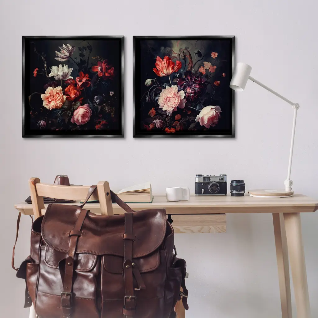 Elevate your home or office to the next level with Stupell Framed Floating Canvas Wall Art. Our premium hand-stretched canvas is mounted securely into a sturdy lightweight frame. The museum-style gap between the wrapped canvas and the box frame gives the illusion of floating artwork. Stupell Wall Art is made in the USA.Features: Dimensions: 2 Piece Set, Each Frame is 18 x 1.7 x 18Two Piece Floating Frame Canvas Products are available as 18"x18" or 25"x25" Panels. All Floating Frame Canvas Products have a 1.7" Depth.Wall Art is Ready to Hang with Hardware Free Hanging. No Installation required. For Easy Set Up Lean or Layer Artwork on Shelf or Against Wall. Artwork is Permently Fixed into the Frame.Our elevated 1.7" Thick Floating Frame is the perfect complement to our canvas style Wall Art. We use only the highest quality inks in house with industry leading printing solutions. Canvas is hand stretched over a durable wood foundation and then mounted securly into a Modern Box Frame. Made in the USA.Artwork Relates To: Floral, Pattern, Flower, Petal, Plant, Botanical, Bouquet, Vintage, TraditionalDesign by Lazar Studio