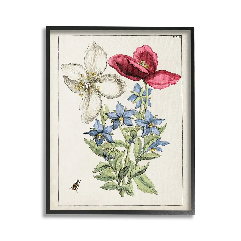 Stupell Vintage Bugs & Flowers Framed Giclee Art Design By World Art Group (Set Of 9) - 11 X 14 - Black