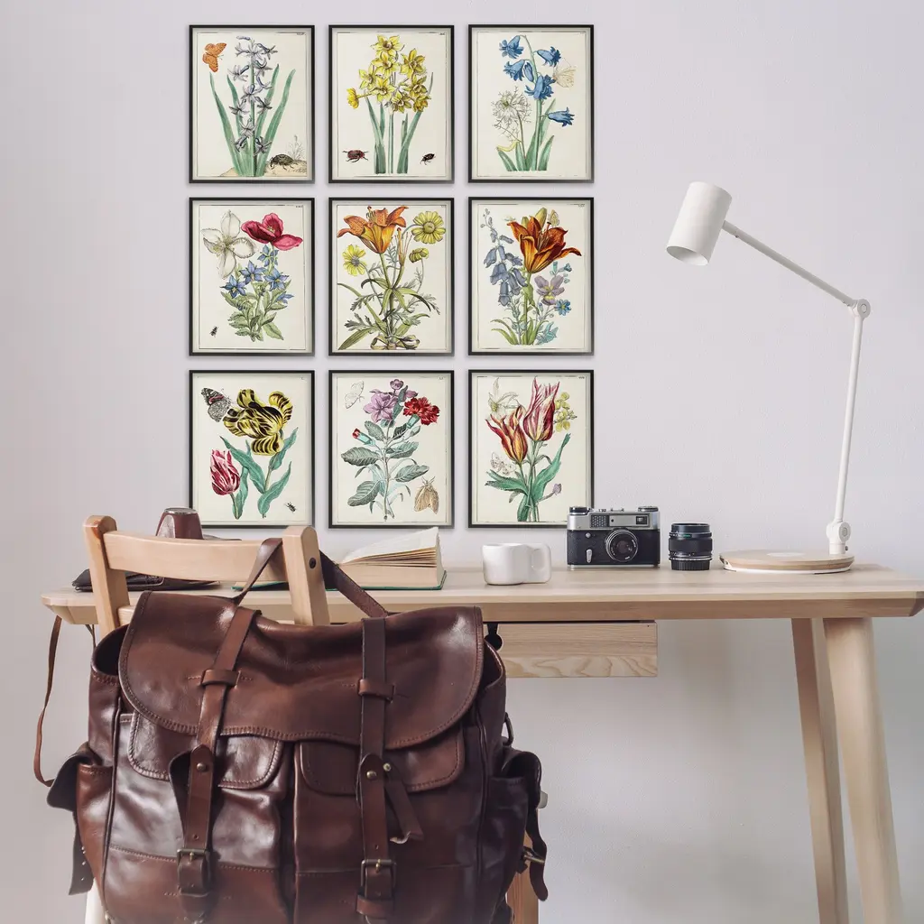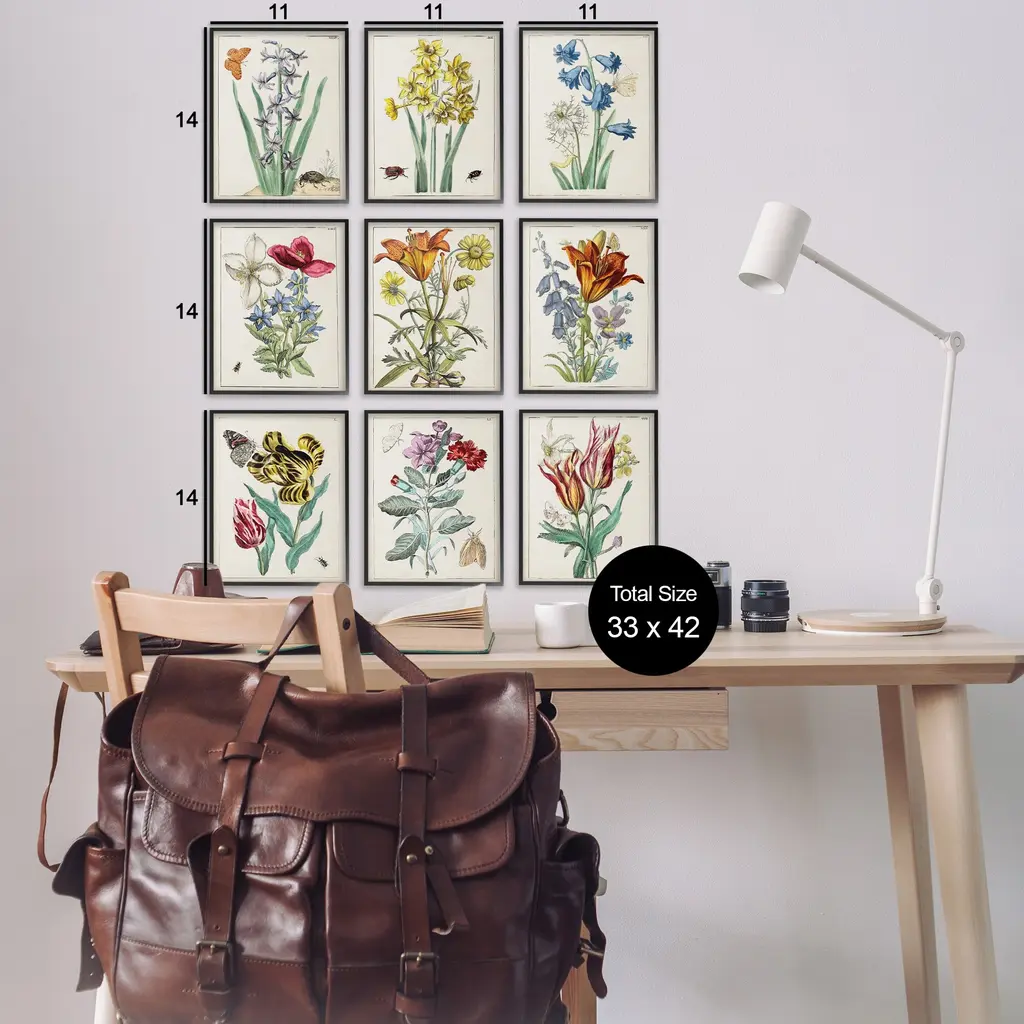 Fill any space in your home or office with our Framed Wall Art Sets. Our framed artwork is securely mounted into a 1.5-inch thick wood grain frame and ready to hang. Frames are available in three alluring styles: black, gray farmhouse and white. Stupell Wall Art is made in the USA.Features: Dimensions: 9 Piece Set, Each Panel is 11 x 1.5 x 14 FramedWall Art is Ready to Hang with Hardware Free Hanging. No installation required. For Easy Set Up Lean or Layer Artwork on Shelf or Against Wall.Curated Wall Art Sets make it easy for you complete the theme for any room. Our giclée prints are carefully mounted on a durable MDF backing, and then perfectly finished in a 1.5 inch thick woodgrain frame. Mounted frame colors include black, gray farmhouse and white. Made In USA.Artwork Relates To: Flower, Plant, Anther, Floral, Petal, Botanical, Leaf, Vintage, Study, Insect, Butterfly, Moth, Bee, BeetleDesign by World Art Group